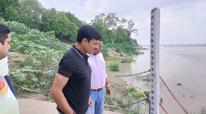 गाजीपुर। बारिस के दिनो में गंगा के जल स्तर में बढाव होने के कारण जनपद में बाढ की समस्या आ जाती है। गंगा नदी में बाढ आने से गंगा की सहायक नदिया भी इससे प्रभावित होती है तथा नदियों का भी जलस्तर बढ जाता है, जिससे जनपद के लगभग 100 गॉव बाढ की चपेट में आ जाते है जिसके कारण वहां का जन जीवन प्रभावित होता है। जिसको लेकर जिलाधिकारी एम पी सिंह ने रविवार को गोला घाट एवं स्टीमर घाट से गंगा के स्तर का निरीक्षण किया। निरीक्षण के दौरान उन्होने बताया कि गंगा का जलस्तर पिछले दिनो लगातार बढाव पर था, परन्तु आज गंगा का जलस्तर स्थित होने पर 59.7 मीटर पर दर्ज किया गया है। उन्होने बताया कि 61 मीटर गंगा जलस्तर होने पर बाढ का एलार्मिंग प्वाइंट शुरू होता है, चुॅकि अभी बाढ की स्थिति नही है। उन्होने बताया कि आने वाले 24 घण्टो में गंगा नदी का जलस्तर की स्थिति या तो स्थिर रहेगी या फिर घट सकती है लेकिन जिला प्रशासन द्वारा लगातार सत्त स्थिति बनाते हुए सभी सम्बन्धित अधिकारी को अलर्ट मोड पर रहने का निर्देश दिया गया है। इस हेतु सभी सम्बन्धित अधिकारियो को बाढं से प्रभावित होने वाले ग्रामो का लगातार निरीक्षण करते हुए सभी व्यापक व्यवस्थाए पूर्व में ही चुस्त दुरूस्थ रखने हेतु निर्देश दिये गये है। मौके पर अपर जिलाधिकारी वि0रा0 अरूण कुमार सिंह, उपजिलाधिकारी सदर प्रतिभा मिश्रा, तहसीलदार सदर, आपदा विशेषज्ञ आशोक राय, अधिसाशी अभियन्ता सिचाई विभाग, ई0ओ नगर पालिका, जिला सूचना अधिकारी राकेश कुमार, एवं अन्य सम्बन्धित अधिकारी उपस्थित थे।