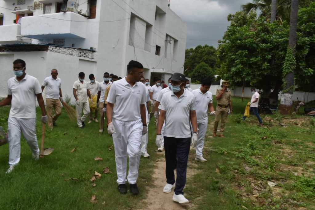 गाजीपुर। देशभर में आजादी के 75 वर्ष पूरे होने के उपलक्ष्य में आजादी का अमृत महोत्सव मनाया जा रहा है। इसी क्रम में आई. जी. वाराणसी परिक्षेत्र वाराणसी के0 सत्यनारायणा व पुलिस अधीक्षक रोहन पी बोत्रे ने हर घर तिरंगा कार्यक्रम के तहत पुलिस लाइन में गुरुवार को भारतवर्ष के 75वें स्वतंत्रता दिवस के अवसर पर मनाए जा रहे आजादी का अमृत महोत्सव कार्यक्रम मे प्रतिभाग किया। इस दौरान पुलिस लाइन में आईजी ने सर्वप्रथम ध्वजारोहण कर सलामी ली गई। इसके पश्चात उन्होंने पुलिस लाइन परिसर में श्रमदान कर सभी अधिकारियों एवं कर्मचारियों को कार्यालयों व लाइन परिसर में साफ सफाई व तिरंगा फहराने हेतु आजादी के इस पर्व को हर्षोल्लास से मनाने हेतु प्रेरित किया।