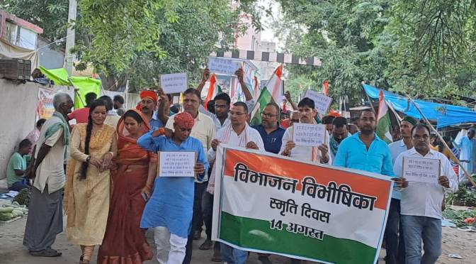 जखनिया (गाज़ीपुर)।रविवार को भारत विभाजन विभीषिका स्मृति दिवस के अवसर पर सायं काल बलिदान हुवे आजादी के मतवालो, वीर जवानों के प्रति श्रद्धा सुमन अर्पित करते हुए जखनिया बाजार में भाजपा कार्यकर्ताओ द्वारा मौन जुलूस निकाल कर श्रद्धांजलि अर्पित किया गया। देश की एकता एवं अखंडता के लिए दृढ़ संकल्प लिया गया। उक्त अवसर पर व्यापार प्रकोष्ठ जिलाध्यक्ष प्रमोद वर्मा ने कहा हमारा तिरंगा एकता अखंडता और देश की विविधता में एकता की पहचान है। इसके लिए भारत देश के कितने रणबांकुरो ने अपना सर्वस्व न्योछावर कर दिया। 14अगस्त विभाजन की चूक दिल और देश में गहरा ज़ख्म भर दिया जो भूले नहीं भूलता है। आज हमारा देश यशस्वी प्रधानमंत्री नरेंद्र मोदी के नेतृत्व में आगे बढ़ रहा है मजबूती से उभर रहा है। उनके नेतृत्व में आराजकता खत्म हो रही है विदेशी ताकतें पस्त हो रही है। आज नरेंद्र मोदी की क्षमता और सूझबूझ की देन है की दो विधान दो निशान को खत्म करते हुए जम्मू कश्मीर से धारा 370 हटाया। आज देश का मुकुट कश्मीर आतंकवाद से मुक्त हो रहा है और जम्मू कश्मीर के कोने कोने में भारत का तिरंगा गर्व से लहरा रहा है। पूरा देश आज आज़ादी के अमृत महोत्सव के इस अवसर पर दृढ़ संकल्पित है की अब किसी भी विभाजनकारी ताकतों को पनपने नहीं देंगे। हमसब एक है। मौन जुलूस जखनिया दक्षिण केबिन से शुरू होकर पूरे बाजार में भ्रमण करते हुए स्टेशन परिसर में स्थापित शहीद रामउग्रह पाण्डेय की प्रतिमा पर श्रद्धांजलि अर्पित कर समाप्त हुआ। जुलूस में जिला उपाध्यक्ष विपिन सिंह,भाजयुमो प्रदेश उपाध्यक्ष राजेश राजभर, मंडल अध्यक्ष उमाशंकर यादव, दयाशंकर सिंह, महामंत्री धर्मवीर राजभर, पियूष सिंह, अशोक प्रधान, झुंना सिंह, नंदू गुप्ता, संतोष आर्मीमैन, उमाशंकर राजभर, अवधेश यति, सतेंद्र पासवान, शिव सिंह, मदन पाण्डेय, जुगनू श्रीवास्तव, रमाकांत राम सहित भारी संख्या में लोग उपस्थित रहें।