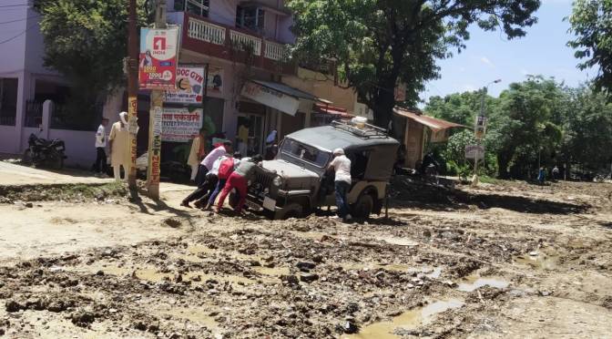गाजीपुर। नगर के सिंचाई विभाग चौरहे से विकास भवन चौराहे तक सड़क में पाइपलाइन बिछाने के बाद सड़क बनाने के बजाय खानापूर्ति कर सड़क को वैसे ही छोड़ दिया गया है। जिससे पूरी सड़क क्षतिग्रस्त हो चुकी है और वर्षा हो जाने से आम राहगीरों को आने-जाने में काफी कठिनाइयों का सामना करना पड़ रहा है। सड़क पर दो पहिया व चार पहिया वाहन गड्ढे में धस जा रही है जिससे बड़ी दुर्घटना घटने कि आशंका बनी हुई है। आये दिन राहगीरों से लेकर बच्चे गिर जा रहे हैं, सबसे ज्यादा दिक्कत तो विद्यालय आने-जाने वाले छोटे बच्चों को हो रही है। इस जर्जर सड़क को लेकर नगरवासियों में आक्रोश व्याप्त है। इस मुद्दे को लेकर युवा समाजसेवी व पूर्व छात्रसंघ उपाध्यक्ष दीपक उपाध्याय ने जिलाधिकारी मंगला प्रसाद सिंह से दोषी ठेकेदार पर कार्रवाई कर यथा शीघ्र सड़क बनवाने की मांग की है।