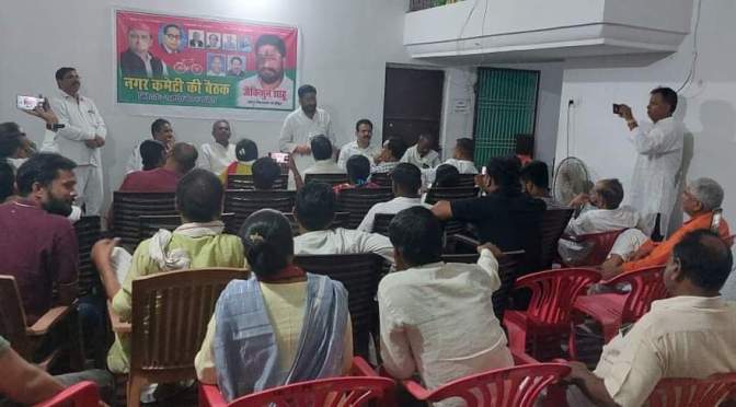 जिलाध्यक्ष रामधारी यादव ने सभी कार्यकर्ताओं से नगरपालिका चुनाव की तैयारी में तन मन धन से जुटने का आह्वान किया और कहा नगर पालिका चुनाव हर हाल में पार्टी का समर्पित,कर्मठ एवं सक्रिय कार्यकर्ता ही चुनाव लड़ेगा । कार्यकर्ताओं का संघर्ष जाया नहीं जायेगा। कार्यकर्ताओं के बल पर ही हमने जनपद की सातों विधानसभा सीटें जीती है और उन्हीं के बल पर हम सभी नगरपालिका एवं नगर पंचायतों की सीटें जीतकर इतिहास रचने का काम करेंगे।