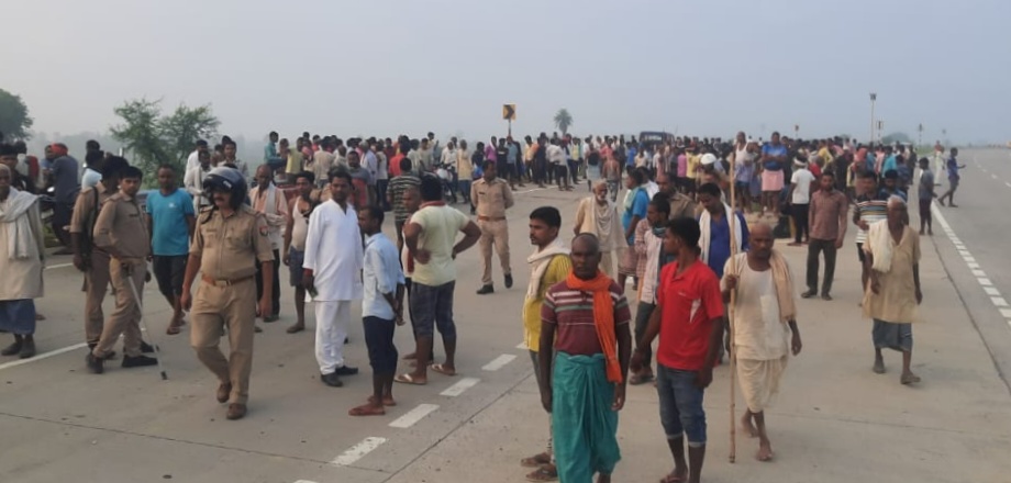 गाजीपुर । जंगीपुर थाना के बेलवा गांव के सामने फोरलेन पर गुरुवार की सुबह मार्निग वाक कर रहे तीन लोगों को तेज रफ्तार कार ने रौद दिया। इससे तीनों की मौत हो गई। सूचना पर मौके पर पहुँची पुलिस ने शव को कब्जे में ले लिया। प्राप्त जानकारी के अनुसार मिठ्ठानपारा गांव निवासी अच्छे लाल यादव 45, दिवाकर सिंह यादव 36 व विनोद सिंह यादव 40 वर्ष हमेशा की तरह फोरलेन पर टहल रहे थे। बेलवा गांव के सामने मऊ की ओर से तेज रफ्तार से आ रही बैगनार कार से धक्का लग गया। इस घटना के बाद वहां लोगों की भीड़ लग गई। लोगो ने इसकी सूचना पुलिस को दी। पुलिस मौके पर पहुंच गई। ग्रामीण सभी को जिला अस्पताल ले आई। जहां डाक्टरों ने मृत घोषित कर दिया। दुर्घटना के बाद चालक कार छोड़कर फरार हो गया।पुलिस कार को थाने ले आयी। जानकारी होने पर विधायक डा. वीरेन्द्र यादव भी वहा पहुंच गके।इस घटना के बाद गांव में कोहराम मच गया।
