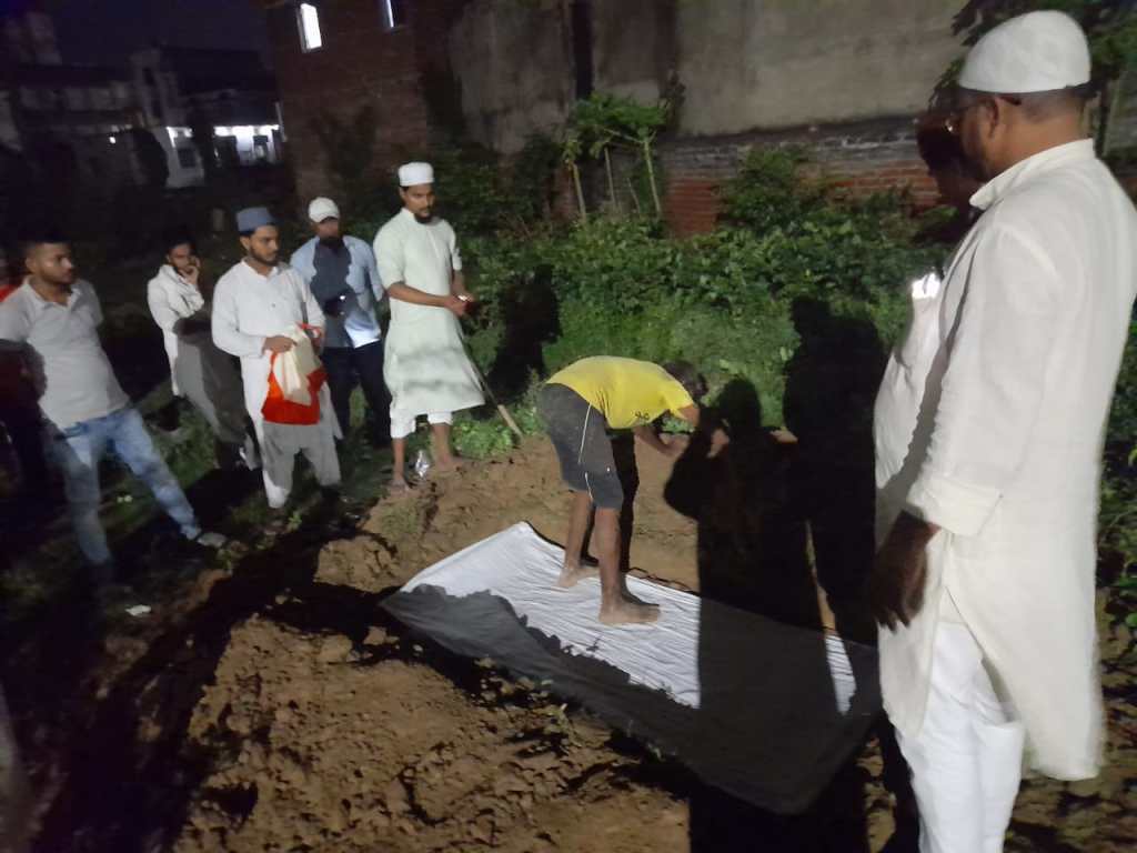गाजीपुर। गहमर थाने के अंतर्गत एक अज्ञात मुस्लिम युवक की ट्रेन दुर्घटना में मृत्यु हो गई थी। जिसकी शिनाख्त नहीं होने पर शव को कुँवर वीरेन्द्र सिंह ने पुलिस के सहयोग से मर्चरी रूम में रखवाकर शिनाख्त कराने की कोशिश की। लेकिन शिनाख्त नहीं होने पर बुधवार की रात अज्ञात शव का पोस्टमॉर्टम कराकर कुँवर वीरेन्द्र सिंह ने पुलिस के सहयोग से शव को विशेश्वरगंज स्थित बड़ा इमामबाड़ा कमेटी के सहयोग से इमामबाड़ा कब्रिस्तान में सुपुर्द ए खाक किया। इस कार्य से लोगों ने वीरेंद्र को कहा कि सलाम है ऐसे नौजवान को जो इस मिट्टी में साथ रहकर इंसानियत का परिचय दिया है। इस नेक कार्य में विशेष योगदान अतीक अहमद राईनी व गुड्डू खान का रहा। इस दौरान मदरसा दिनिया से मौलाना सउदुल हसन साहब, मौलाना इफ्तिखार साहब, अशरफउल्लाह, शब्बीर राईन, शेरू खान, कमर अली, अभिषेक यादव आदि लोग मौजूद रहे।