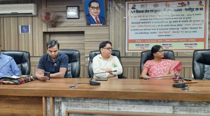 गाजीपुर। राष्ट्रीय पोषण माह 2022 के अंतर्गत लोक भवन लखनऊ के सभागार से आंगनबाड़ी केंद्रों के शिलान्यास एवं लोकार्पण समारोह का सजीव प्रसारण कार्यक्रम जिला पंचायत सभागार में शुक्रवार को आयोजित किया गया। इस दौरान मुख्यमंत्री द्वारा 199 आंगनबाड़ी केंद्रों का शिलान्यास एवं 501 आंगनबाड़ी केंद्रों के लोकार्पण के साथ-साथ सक्षम पोषण मैनुअल का विमोचन तथा सहयोग एवं बाल पिटारा एप का शुभारंभ किया गया। जनपद स्तरीय कार्यक्रम के मुख्य अतिथि सरिता अग्रवाल अध्यक्ष नगर पालिका परिषद ने इस अवसर पर कहा कि अच्छा स्वास्थ्य व अच्छी शिक्षा को सभी की आवश्यकता है। दोनों क्षेत्रों में वर्तमान सरकार द्वारा अभूतपूर्व कार्य किया गया जिसका परिणाम आप सभी के सामने है। कोरोना संकट के दौरान आंगनबाड़ी कार्यकत्रियों की भूमिका महत्वपूर्ण रही है। अग्रवाल ने कहा कि आपको जो दायित्व दिया गया है उसका बखूबी निर्वहन करें। सहयोग एवं बाल पिटारा एप से आपके कार्यों में सहायता मिलेगी।
