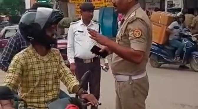 गाजीपुर। यातायात पुलिस लगातार बाइक पर पीछे बैठने वालों को भी हेलमेट का प्रयोग करने के लिए जागरूक कर रही है। इसी क्रम में शुक्रवार को यातायात प्रभारी सुशील कुमार मिश्रा के नेतृत्व में ट्रैफिक पुलिस ने नगर के विशेश्वरगंज, लंका, भुटहियाटाड़, रौजा तिराहा सहित अन्य स्थानों पर जागरुकता अभियान चलाया। इस दौरान बाइक सवार जिन दो व्यक्तियों पर पुलिस की नजर पड़ी, उन्हें रोका। इस दौरान उन्हें बताया कि सुरक्षा की दृष्टि से अब बाइक चालक के अलावा पीछे बैठने वालों के लिए भी हेलमेट अनिवार्य कर दिया गया है।