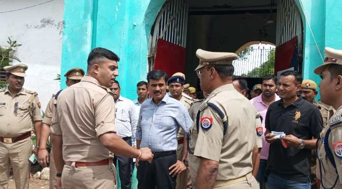 गाजीपुर। जिलाधिकारी एम.पी. सिंह एवं पुलिस अधीक्षक रोहन पी0 बोत्रे ने शनिवार को जिला कारागार का औचक निरीक्षण किया। निरीक्षण के दौरान बंदियों एवं उनके बैरकों की सघन तलाशी ली गई। वहां मौजूद कैदियों से उनके स्वास्थ्य, साफ-सफाई, खाने-पीने के बारे में पूछताछ की, इसके बाद अस्पताल, मेस इत्यादि का निरीक्षण किया। निरीक्षण के दौरान ली गई तलाशी में किसी भी प्रकार की आपत्तिजनक वस्तु प्राप्त नही हुयी। डीएम और एसपी ने जेल की व्यवस्था चुस्त और दुरुस्त रखने के लिए संबंधित को आवश्यक दिशा निर्देश दिया।