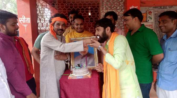 नन्दगंज (गाजीपुर) प्रधानमंत्री नरेन्द्र मोदी का जन्म दिन भाजपा मण्डल में हनुमान मन्दिर पर शनिवार को भाजपा कार्यकर्ताओं ने केक काटकर धूम धाम से मनाया। इस अवसर पर भाजपा कार्यकर्ताओं ने हनुमान चालीसा का पाठ और शंखनाद किया। उसके बाद दीप जलाकर और केक काटकर मोदी का जन्म दिन धूमधाम से मनाया और उनकी लम्बी उम्र के साथ स्वस्थ रहने की ईश्वर से प्रार्थना की। प्रधानमंत्री ने जिस तरह से पूरे विश्व मे देश का नाम रोशन किया और एक नए भारत की नींव रखकर देश के विकास को जिस गति से आगे बढ़ाने का काम किया उससे पूरा देश आज भारत को एक नए शक्ति के रूप में उभरते हुए देख रहा है। इस अवसर पर मण्डल अध्यक्ष विनीत शर्मा, भाजपा एनजीओ प्रकोष्ट के जिला संयोजक रविन्द्र श्रीवास्तव, क्षेत्रीय उपाध्यक्ष युवा मोर्चा मयंक जायसवाल, संजय चौरसिया, विजयी गोड, विनोद गुप्ता, दुर्गेश सिंह, अमन जायसवाल, सौरभ श्रीवास्तव, मनीष गोड़, गनेश वर्मा आदि लोग मौजूद रहे।