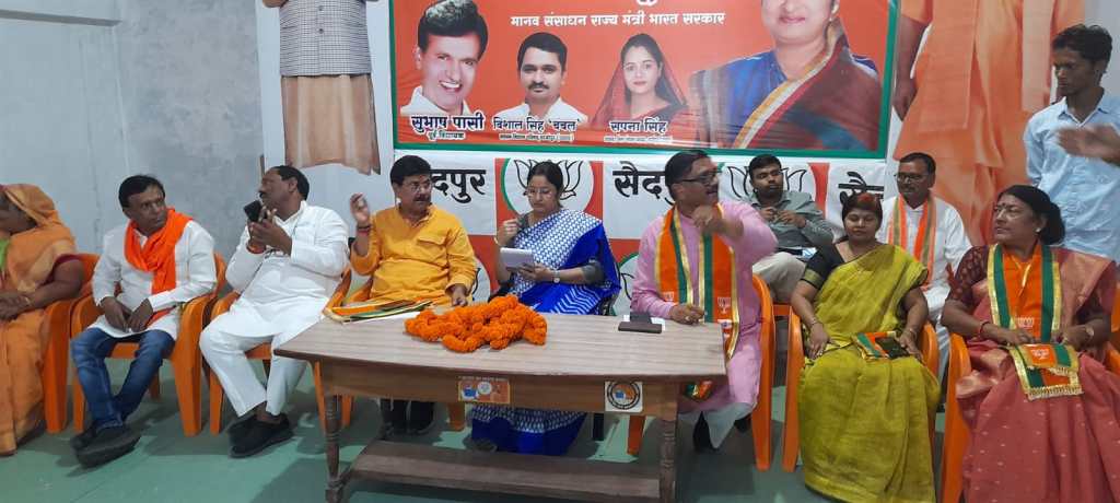गाजीपुर। केन्द्रीय शिक्षा राज्य मंत्री अन्नपूर्णा देवी मंगलवार को अपने एक दिवसीय लोकसभा प्रवास दौरे पर जनपद के सैदपुर विधानसभा के विभिन्न कार्यक्रमों तथा भाजपा की संगठनात्मक बैठक मे भाग लिया। बैठक पुर्व विधायक सुबाष पासी के आवास पर जिलाध्यक्ष भानुप्रताप सिंह के अध्यक्षता मे हुई। संगठनात्मक बैठक मे उन्होंने विधानसभा संयोजकों, प्रभारियों, मोर्चा अध्यक्षों तथा मीडिया, शोसल मीडिया एवं आई टी संयोजकों संग बैठक मे कहा कि प्रधानमंत्री नरेन्द्र मोदी और मुख्यमंत्री योगी आदित्यनाथ के नेतृत्व मे समाज के हर वर्ग के लिए विगत कार्यकाल से ही किए जा रहे है। जन कल्याणकारी योजनाओं एवं विकास कार्यों के दम पर 2024 लोक सभा के चुनाव मे भाजपा की जीत सुनिश्चित है। पुर्व विधायक सुबाष पासी के आवास के सभागार मे भाजपा जिलाध्यक्ष भानुप्रताप सिंह की अध्यक्षता में केन्द्रीय मंत्री अन्नपूर्णा देवी ने प्रवास कार्यक्रम मे निहित महिलाओं संग वार्ता के कार्यक्रम मे सैकड़ो महिलाओं को सम्बोधित करते हुए कहा कि महिलाओं का सम्मान और समृद्धि कैसे हो, महिलाएं आगे कैसे बढ़े, कैसे सशक्त और आत्मनिर्भर हों इसका पुरा पुरा ध्यान प्रधानमंत्री रखते और उसके लिए सिर्फ बात ही नही संकल्पित प्रयासों के साथ काम भी कर रहे है। उन्होंने कहा कि प्रधानमंत्री नरेन्द्र मोदी का सोचना है कि जब देश की महिला सशक्त होगी तो देश मजबूत होगा। मंत्री अन्नपूर्णा देवी ने कहा कि आज महिलाएं सरकार के सहयोग से लगातार आर्थिक रुप से स्वावलंबी और मजबूत हो रही है कोई ऐसा क्षेत्र नहीं है जहाँ आज महिलाएं काम नही कर रही है। इस दौरान डा संगीता बलवंत ने भी बैठक को संबोधित किया। अतिथियों एवं आगंतुकों के प्रति पुर्व चेयरमैन नगर पंचायत शीला सोनकर ने आभार धन्यवाद प्रकट किया तथा विधानसभा प्रभारी वृजनन्दन सिंह ने कार्यक्रम का संचालन किया। इस अवसर पर मंत्री को पुर्व विधायक सुबाष पासी ने स्मृति चिन्ह एवं शाल देकर तथा उपस्थित महिलाओं ने माल्यार्पण कर स्वागत सम्मान किया। इस अवसर पर जिला प्रभारी अशोक मिश्रा, लोकसभा संयोजक सुशील उपाध्याय, संयोजक कृष्ण बिहारी राय, रामतेज पांडेय, क्षेत्रीय उपाध्यक्ष सरोज कुशवाहा, प्रो शोभनाथ यादव, पुर्व विधायक सुनीता सिंह, प्रवीण सिंह, दयाशंकर पांडेय, रामनरेश कुशवाहा, डा विजय यादव, डा मुराहू राजभर, नरेन्द्र पाठक, अमरेश गुप्ता, सुरेश बिंद, ओमकार मिश्र, विनोद खरवार, शैलेश राम, मनोज बिंद, गुलाम कादिर राईनी, कार्तिक गुप्ता, रघुवंश सिंह, आलोक शर्मा, मीरा श्रीवास्तव, पूनम मौर्य, नीलम सिंह, निर्मला पाठक सहित आदि अन्य लोग उपस्थित थे।