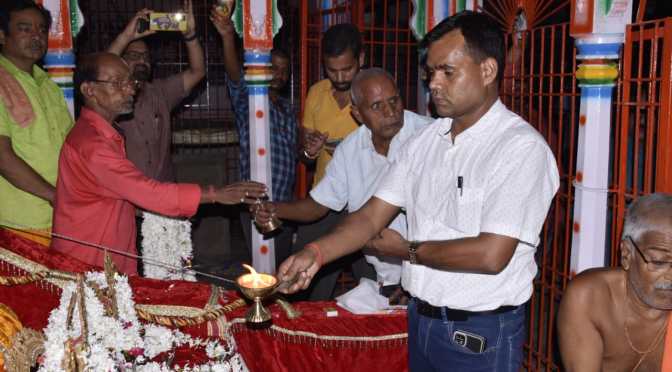 गाजीपुर। अतिप्राचीन श्रीराम लीला कमेटी हरिशंकरी के तत्वावधान में 21 सितम्बर बुधवार शाम 7 बजे हरिशंकरी स्थित श्रीराम सिंहासन पर धनुष मुकुट पूजन नारद मोह तथा रामजन्म लीला का प्रसंग मंचन किया गया। लीला का शुभारम्भ बतौर मुख्यातिथि एस0पी0 सिटी गोपीनाथ सोनी, विशिष्ट अतिथि सीओ सिटी गौरव कुमार सिंह समेत शहर कोतवाल तेज बहादुर सिंह, कमेटी के अध्यक्ष प्रकाश चन्द श्रीवास्तव, उपाध्यक्ष विनय कुमार सिंह, मंत्री ओमप्रकाश तिवारी उर्फ बच्चा, संयुक्त मंत्री लक्ष्मी नरायन, उप मंत्री लवकुमार त्रिवेदी, प्रबंधक बीरेश राम वर्मा (ब्रहमचारी जी), उप प्रबंधक मयंक कुमार तिवारी, वरूण कुमार अग्रवाल, योगेश कुमार वर्मा ने धनुष मुकुट का पूजन करके लीला का शुभारम्भ किया। धनुष मुकुट पूजन के बाद श्रीराम चबुतरा स्थित मंच पर वन्देवाणी विनायकौ आदर्श रामलीला मण्डल के कलाकारों द्वारा नारद मोह तथा श्रीराम जन्म लीला का मंचन किया। इस अवसर पर आय-व्यय निरीक्षक अनुज अग्रवाल, ओमनरायन सैनी, अशोक कुमार अग्रवाल, योगेश कुमार वर्मा, बाके तिवारी, डा0 गोपाल पाण्डेय, अशोक अग्रवाल, अजय पाठक सहित कमेटी के पदाधिकारीगण उपस्थित रहें।