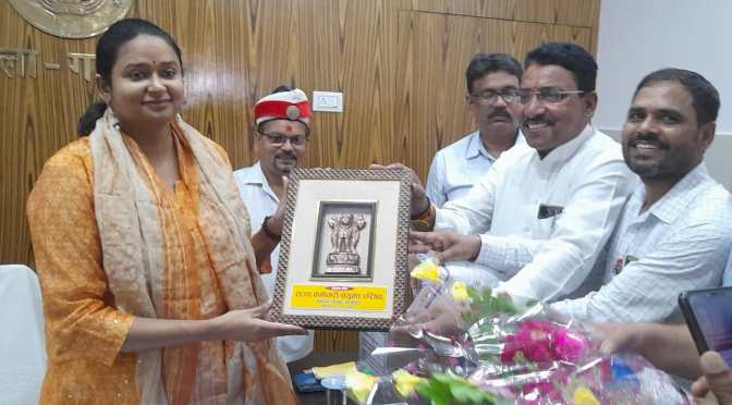 गाज़ीपुर।राज्य कर्मचारी संयुक्त परिषद उत्तर प्रदेश जनपद शाखा गाजीपुर का एक शीर्ष प्रतिनिधि मण्डल जिलाध्यक्ष अम्बिका दूबे के नेतृत्व में नवागत जिलाधिकारी आर्यका अखौरी से शिष्टाचार मुलाकात किया। पुष्पगुच्छ व स्मृति चिन्ह भेंट कर उनका स्वागत व अभिनंदन किया।परिषद के जिलाध्यक्ष ने जिलाधिकारी को संगठन की तरफ से आश्वस्त किया कि आप के निर्देशन में जनपद का प्रत्येक कर्मचारी सरकार की लोक कल्याणकारी योजनाओं के क्रियान्वयन में पूरी निष्ठा /ईमानदारी से अपने दायित्वों का निर्वाहन करेगा।परिषद अध्यक्ष ने कर्मचारियों की कुछ व्यवहारिक एवम विभागीय समस्याओं के त्वरित निराकरण की अपील की।नवागत जिलाधिकारी आर्यका अखौरी ने प्रतिनिधि मण्डल को आश्वस्त किया कि जनपद के कर्मचारियों ज्वलंत व उचित समस्याओं का प्राथमिकता के आधार पर निराकरण किया जाएगा।प्रतिनिधि मण्डल में परिषद के जिला मंत्री ओमप्रकाश यादव, इ सुरेंद्र प्रताप,सूर्यभान राय,बैजनाथ तिवारी, पवन पाण्डेय,संदीप यादव,यशोधरा बसंत गजघाटे,कंचन जायसवाल,सुरेश प्रसाद,प्रमोद मिश्रा,बृजेश यादव,विजेंद्र कुमार,माधवेंद्र यादव सहित परिषद से सम्बद्ध विभिन्न संगठनों के शीर्ष पदाधिकारी शामिल रहे।