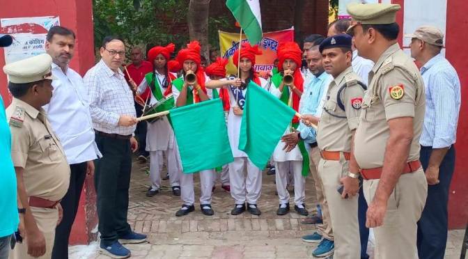 गाजीपुर। विशेष सड़क सुरक्षा रैली अभियान शनिवार को राजकीय बालिका इण्टर कालेज महुआबाग से प्रारम्भ किया गया। रैली को सहायक सम्भागीय परिवान अधिकारी श्रीराम सिंह एंव एसपी सिटी गोपी नाथ सोनी ने संयुक्त रूप हरी झण्डी दिखाकर रवाना किया। जिसमें बेसिक शिक्षाधिकारी, यातायात निरीक्षक सुशील मिश्रा, तेज सिंह मोटर ट्रेनिग स्कूल के प्रबन्धक अरविन्द सिंह, प्रधानाचार्य रा0बा0ई0 कालेज के व्यक्ति उपस्थिति रहे। रैली के दौरान सड़क सुरक्षा के सम्बन्ध मेें विशेष जानकारिया दी गयी। यह रैली शहर के विभिन्न मार्गो से होते हुए राईफल क्लब कचहरी पहुचकर समाप्त हुआ।