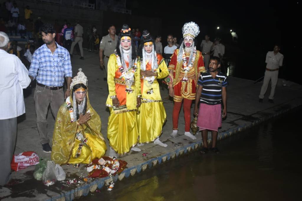 गाजीपुर। अति प्राचीन श्री रामलीला कमेटी हरिशंकरी के तत्वाधान में नगर के हरिशंकरी स्थित श्री राम चबुतरा से 8 अक्टूबर शनिवार को शाम 7 बजे श्री राम, सीता, लक्ष्मण की शोभायात्रा शुरू होकर परसपुरा होते कलक्टर घाट सम्पन्न हुआ। बताते चले कि श्री राम माता-पिता के आज्ञा का पालन करते हुए 14 वर्ष तक बनवास का समय बीता कर पथ्वी से असुरों का संहार करके तथा जंगलों, व गुफाओं के अन्दर तपस्या में तीन ऋषि मुनियों का दर्शन व आशीर्वाद प्राप्त करके अयोध्या के लिए प्रस्थान करते है। इसके बाद दूसरे दिन पतित पावनी माता गंगा जी का दर्शन करते है। और सीता जी विधि विधान के साथ पूजन अर्चन करके उनका आशीर्वाद प्राप्त करती हैं। इसी प्रकार गंगा पूजन होने के बाद वन्दे वाणी विनायको द्वारा स्थानीय कलक्टर घाट पर प्रभु श्री राम के दस अवतार का विभिन्न स्वरूपों में विष्णु, मत्स, कच्छप, वामन, वराह, कृष्ण, नरसिंह, परशुराम, कल्कि, कुर्म ये दस अवतार के झांकी का दृश्य दर्शाया गया। इस मौके पर मंत्री ओमप्रकाश तिवारी उर्फ बच्चा, कोषाध्यक्ष रोहित कुमार अग्रवाल, प्रबन्धक वीरेश राम वर्मा, उपप्रबंधक मयंक तिवारी, कृष्ण बिहारी त्रिवेदी पत्रकार, राम सिंह यादव आदि रहे।