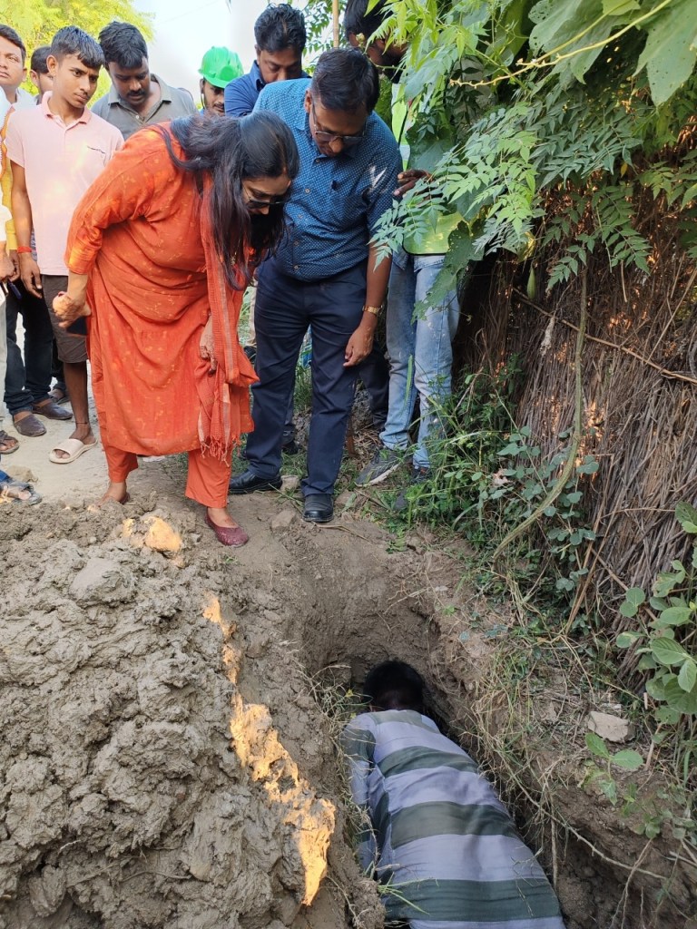 गाजीपुर। ‘‘हर घर जल‘‘ जल जीवन मिशन के अर्न्तगत शनिवार को जिलाधिकारी आर्यका अखौरी ने विकास खण्ड भदौरा के ग्राम बभनौलिया मे पाइप पेय जल योजना का स्थलीय निरीक्षण किया। निरीक्षण के दौरान मुख्य विकास अधिकारी के साथ अधिशासी अभियन्ता जल निगम (ग्रामीण) मो0 कासिम हाशमी, सहायक अभीयन्ता नलकूप प्रथम खण्ड, शैलेन्द्र सिंह कौशिक सहायक अभियन्ता, हर्ष पाण्डेय सहायक अभियन्ता निरीक्षण के समय उपस्थित थे। इस योजना मे राजस्व ग्राम बभनौलिया एवं सूर्यभानपुर शामिल है। इसमें पॉच मजरों को भी शामिल किया गया है। यह योजना भारत सरकार एवं राज्य सरकार की अति महत्वाकांक्षी योजना जल जीवन मिशन के अर्न्तगत ‘‘हर घर को नल‘‘ से जल उपलब्ध कराने हेतु जनपद के विकास खण्ड भदौरा के ग्राम पंचायत बभनौलियां मे जिलाधिकारी ने इस योजना के अर्न्तगत बिछायी गयी पाईप लाईन को स्वंय खुदवाकर जॉच किया साथ ही घर मे जो पाईप कनेक्शन दिये गये थे उसका भी मानक के अनुसार जॉच की। निरीक्षण मे कुछ ग्रामीणो द्वारा शिकायत की गयी थी कि हाउस कनेक्शन को 05 मीटर लम्बाई के बाद छोड़ दिया जा रहा है। इस शिकायत का संज्ञान लेते हुए जिलाधिकारी ने सम्बन्धित कार्यदायी संस्था को निर्देश दिया की हाउस कनेक्शन को घर के अन्दर तक दिया जाय, साथ ही उन्होने निर्देश दिया की तोड़ी गयी सड़को को तत्काल मरम्मत कराया जाय।
