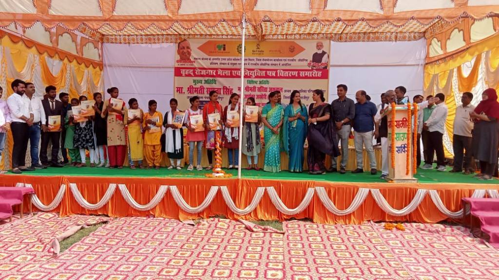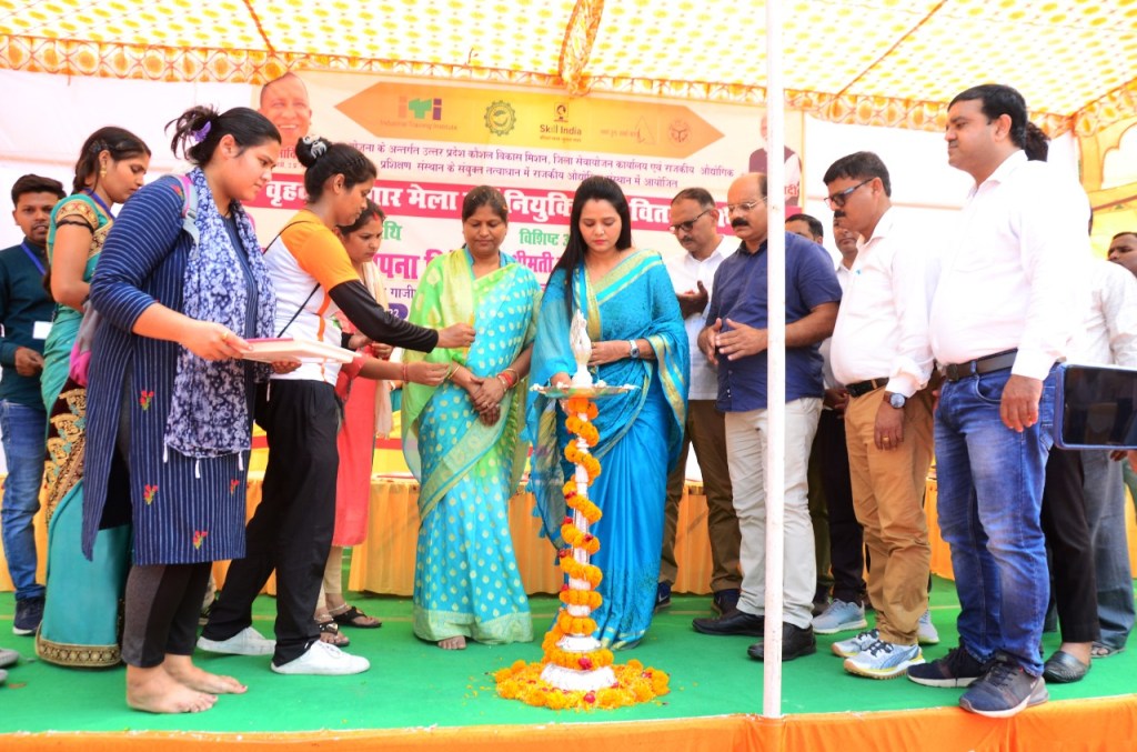 गाजीपुर। राजकीय औद्योगिक प्रशिक्षण संस्थान परिसर में बुधवार को वृहद रोजगार मेले का आयोजन किया किया गया। इस मेले का शुभारंभ मुख्य अतिथि जिला पंचायत अध्यक्ष सपना सिंह एवं विशिष्ट अतिथि नगर पालिका अध्यक्ष सरिता अग्रवाल ने दीप प्रज्जवलित कर किया। अध्यक्ष ने बताया कि कौशल विकास, जिला सेवायोजन एवं राजकीय औद्योगिक प्रशिक्षण संस्थान के संयुक्त तत्वाधान में रोजगार मेले का आयोजन किया गया। इस मेले मे 42 से अधिक कम्पनियों ने प्रतिभाग किया, जिसमें 4200 से अधिक बेरोजगार अभ्यर्थियों ने प्रतिभाग किया। प्रमुख कम्पनियोें में मुख्य रूप से महेन्द्रा ऑटो मैन पॉवर, रोहित हाइब्रिड सीड्स, एल एंड टी कम्पनी, डाबर आयुर्वेद, मारूती सुजुकी, वीवा जेन ब्यूटी सैलून द्वारा विभिन्न पदों पर लगभग 2375 अभ्यर्थियों का चयन किया गया। चयनित अभ्यर्थियों को मुख्य अतिथियो द्वारा नियुक्त प्रमाण-पत्र वितरित किया गया। सरकार की मंशा है कि अधिक से अधिक लोगो को रोजगार प्राप्त हो जिससे उनकी आर्थिक स्थिति में सुधार हो सके। उन्होने आमलोगो से अपील किया कि आगामी रोजगार मेले में भी अभ्यर्थी ज्यादा से ज्यादा प्रतिभाग करे।