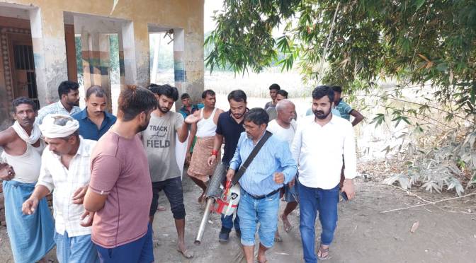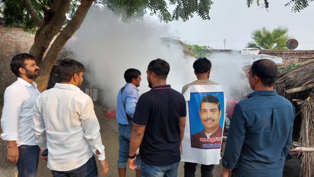 गाजीपुर। घोसी सांसद अतुल राय के प्रतिनिधि गोपाल राय अपनी टीम मधुबन के साथ बुधवार को आए बाढ़ का पानी उतरने पर मच्छरों और डेंगू के प्रकोप से बचने के लिए खैरा, टड़वा, दल्लीपुर, टाड़ी, जरलहवा, धरमपुर से बंधा तक ओडोमास, क्लोरीन टैबलेट के साथ साथ दवा का छिड़काव और फागिंग शुरू किया। ज्ञात हो कि बाढ़ का पानी विगत एक हफ्ते से गांवो में आ जाने से जन जीवन अस्त ब्यस्त हो गया था। उस वक्त सांसद अतुल राय की टीम शिविरों के माध्यम से सभी बाढ़ पीड़ितों को भोजन व चिकित्सकीय टीम द्वारा दवाएं उपलब्ध करा रहे थे। दवा छिड़काव के दौरान गोपाल राय ने सभी से अपील किया कि डेंगू से खुद को व अपनों को बचाने के लिए अपने आस पास साफ सफाई रखिए और गंदा पानी जमा न होने दीजिए। इस दौरान राजविजय, एडवोकेट संजय राय, मुन्ना चौहान, कमलेश शर्मा, बबलू यादव, सोनू गोड़, अरविंद, रजत अमित, नितेश, भैरो, संजय सिंह, रामविलास एवं विनोद भारती शामिल थे।