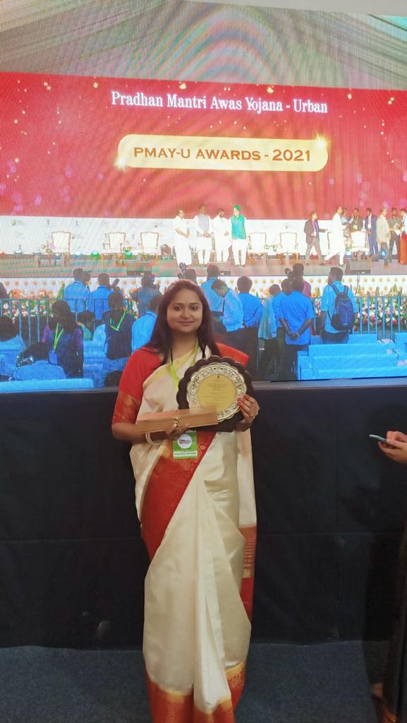 गाजीपुर। प्रधानमंत्री आवास योजना-सबके लिए आवास (शहरी) अवार्ड-2021 मे देश मे सर्वश्रेष्ठ प्रदर्शन करने वाली जिलाधिकारी को पुरस्कृत किया गया। जिलाधिकारी आर्यका अखौरी भदोही के नगर पालिका टीम के साथ गुजरात पहुंची। जहां केन्द्रिय मंत्री हरदीप पुरी द्वारा राजकोट, गुजरात मे जिलाधिकारी आर्यका अखौरी को पुरस्कार प्राप्त प्रदान किया गया। ज्ञात हो कि इससे पूर्व वे भदोही की जिलाधिकारी पद पर कार्यरत थी। बता दें कि प्रधानमंत्री आवास योजना (शहरी) में देश में सर्वश्रेष्ठ प्रदर्शन करने वाली नगर पालिका भदोही और जिलाधिकारी आर्यका अखौरी को केंद्रीय मंत्री हरदीप पुरी से राजकोट गुजरात में पुरस्कार प्राप्त हुआ। इस दौरान अपने टीम के साथ जिलाधिकारी आर्यका अखौरी ने पुरस्कार ग्रहण किया।
