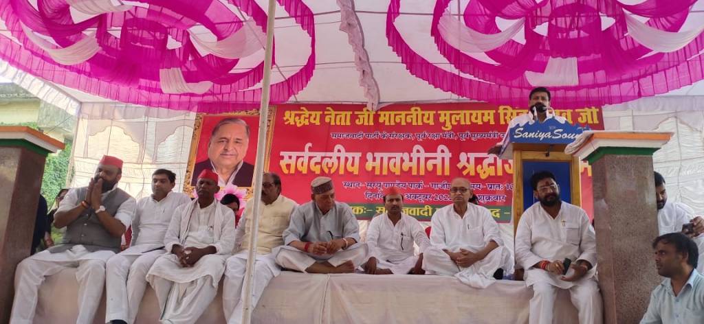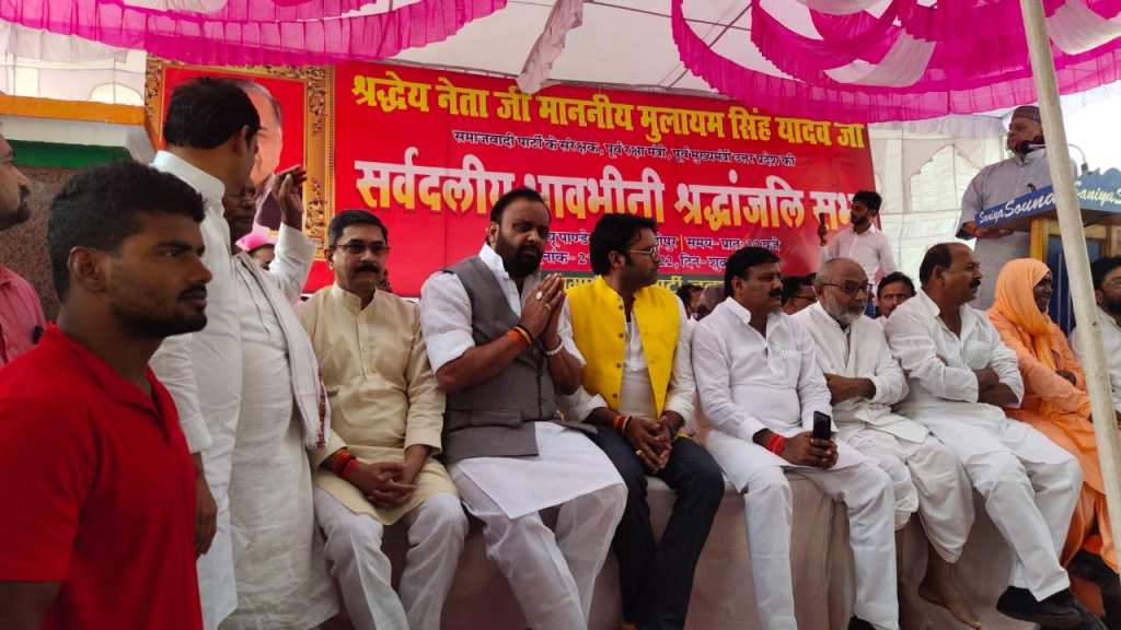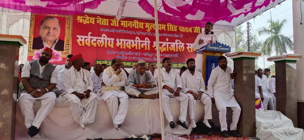 वह आजीवन समाज से गैरबराबरी समाप्त कर समता मूलक समाज बनाने की लड़ाई लड़ते रहे। वक्ताओं ने यह भी कहा कि यह उनके व्यक्तित्व का ही कमाल था कि लोगों ने दलीय सीमा तोड़कर क्या पक्ष क्या विपक्ष सभी उनके अंतिम संस्कार में शामिल हुए और उन्हें अपनी श्रद्धांजलि अर्पित किया। सांसद अफजाल अंसारी ने नेता जी को श्रद्धांजलि अर्पित करते हुए नेता जी को सर्वमान्य नेता बताया और भारत सरकार से उन्हें भारत रत्न सम्मान देने की मांग किया। उन्होंने नेता जी को गरीबों का रहनुमा और हर दिल अजीज बताते हुए कहा कि नेता जी एक व्यक्ति नहीं बल्कि एक विचार थे। गैरबराबरी के खिलाफ वह आजीवन संघर्ष करते रहे। उनकी संघर्ष गाथा हम सबके लिए प्रेरणा स्रोत है। हमें उनके जीवन से यह प्रेरणा मिलती है यदि व्यक्ति संघर्ष करेगा तो उसके लिए कोई मंजिल नामुमकिन नहीं है। जमानियां विधायक ओमप्रकाश सिंह ने नेता जी को श्रद्धांजलि अर्पित करते हुए कहा कि नेता जी अपने कार्यों, विचारों, वसूलों और सिद्धान्तों के लिए हमेशा याद किये जायेंगे। नेता जी मरे नहीं बल्कि अमर हो गए हैं। उन्होंने कहा कि मुलायम सिंह जैसे नेता आज भारत की राजनीति में दुर्लभ हो गये है। उनके अंदर संघर्ष करने की अद्भुत क्षमता थी। उनके मन में गरीबों के लिए गहरी वेदना और पीड़ा थी। जब भी अवसर मिला गरीबों ही नहीं समाज के हर तबके के लिए दिल खोलकर कलम चलाई। वह सत्ता की राजनीति नहीं बल्कि व्यवस्था परिवर्तन के लिए आजीवन संघर्ष करते रहे। उनके संघर्षों से प्रेरणा लेकर हमें समाजवादी आंदोलन को आगे बढ़ाने की जरूरत है। विधायक डॉ वीरेंद्र यादव ने श्रद्धांजलि अर्पित करते हुए जिले में नेता जी की प्रतिमा लगाने का प्रस्ताव रक्खा जिसे उपस्थित सभी नेताओं और कार्यकर्ताओं ने सर्वसम्मति से हाथ उठाकर अपनी सहमति प्रदान किया। उन्होंने कहा कि नेता जी ने हमेशा हम सबको संघर्ष का पाठ पढ़ाया और वह गरीबों पिछड़ों के सवाल पर आजीवन संघर्ष करते रहे। उन्होंने कहा कि जिस तरह से नेता जी को श्रद्धांजलि देने के लिए नेताओं का तांता लगा रहा वह नेता जी की लोकप्रियता को दर्शाता है।