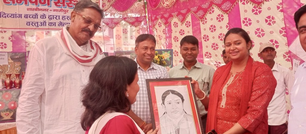 गाजीपुर। शुक्रवार को समर्पण संस्था द्वारा संचालित राजेश्वरी विकलांग विद्यालय एवं व्यवसायिक प्रशिक्षण केन्द्र शास्त्री नगर के तत्वाधान में विद्यालय के दिव्यांग छात्र छात्राओं द्वारा हस्त निर्मित वस्तुओं जैसे दीपक, ज्वैलरी, रंगीन दीपक प्रीन्टिग चादर, गुलदस्ता इत्यादि वस्तुओं का निर्माण कर दिपावली के अवसर पर विकास भवन परिसर में मेले का आयोजन हुआ। मेले का नेतृत्व जिला दिव्यांगजन सशक्तीकरण अधिकारी नरेन्द्र विश्वकर्मा एवं समर्पण संस्था के संरक्षिका सविता सिंह द्वारा किया गया। मेले के मुख्य अतिथि आर्यका अखौरी जिलाधिकारी एवं सांसद अफजाल अंसारी थे। मेले का शुभारम्भ जिलाधिकारी आर्यका अखौरी ने फीता काट कर किया। विशिष्ठ अतिथि के रूप में मुख्य विकास अधिकारी श्रीप्रकाश गुप्ता, समाज कल्याण अधिकारी रामनगीना यादव, परियोजना निदेशक राजेश यादव एवं सुखवीर एग्रो एनर्जी फत्तेहउल्लापुर के जी0एम0 प्रिंस गरखर उर्फ वावी रहे। कार्यक्रम में मुख्य अतिथि ने कहा कि मैं संस्था के संस्थापक को धन्यवाद देती हूं कि ऐसे विद्यालय का निर्माण करके दिव्यांग बच्चों को स्वावलम्बी बनाने का जो प्रयास किया है वो काफी सराहनीय है। विद्यालय के सम्बन्ध मे हुई वार्ता में विद्यालय में चल रहे भूमि के बात को लेकर सुखवीर एग्रो एनर्जी के जी0एम0 ने कहा कि कुछ भाग विवादित है उसका निराकरण कर दिया जाय तो काफी सहुलियत होगी। इस पर जिलाधिकारी ने कहा कि विद्यालय के जो काम अधूरे पडे हुए है उन्हें जल्द ही पूरा करा लिया जायेगा। कार्यक्रम में नरेन्द्र विश्वकर्मा जिला दिव्यांगजन सशक्तीकरण अधिकारी ने कहा कि इस बच्चों के हुनर को देखने से हमारे समाज को प्रेरणा मिलती है कि स्वावलम्बन के क्षेत्र में समाज को भी आगे आना चाहिए। जिलाधिकारी ने मेले मे लगाये गये स्टाल का अवलोकन कर दिव्यांग बच्चो का उत्साहवर्घन किया तथा दिव्यांग बच्ची द्वारा अपनी हाथो से बनाये गयी जिलाधिकारी की तस्वीर भेट की गयी जिसपर उन्होने प्रशंन्नता व्यक्त की। मेले मेें आये हुए समस्त आगन्तुक द्वारा बच्चों के बनाये गये वस्तुओं कि काफी प्रशंसा की गयी। अन्त में सभी आगन्तुको का सविता सिंह ने अभार व्यक्त किया।