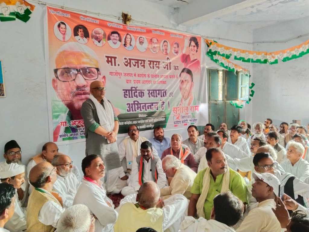 गाज़ीपुर। उत्तर प्रदेश के प्रांतीय अध्यक्ष बनने के बाद पिंडरा वाराणसी से पांच बार विधायक रहे और उत्तर प्रदेश सरकार के पूर्व मंत्री अजय राय गुरुवार को ग़ाज़ीपुर जिला कांग्रेस कमेटी के रजदेपुर स्थित कैम्प कार्यालय अपने पूर्व नियत कार्यक्रम से पहुचे थे, जहां कांग्रेस जिलाध्यक्ष सुनील राम की अध्यक्षता में कार्यकर्ता व पदाधिकारियों ने उनका भव्य स्वागत किया। प्रांतीय अध्यक्ष अजय राय ने कांग्रेस पदाधिकारियों और कार्यकर्ताओं के साथ बैठक में शामिल हुए। जहां उन्होंने कांग्रेस पार्टी को बूथ स्तर पर मजबूत करने का आह्वान कार्यकर्ताओं से किया। बैठक में उन्होंने कार्यकर्ताओं और पदाधिकारियों में उर्जा भरते हुए कहा कि नवनिर्वाचित राष्ट्रीय अध्यक्ष खड़गे जी के नेतृत्व में 2024 लोकसभा का चुनाव कांग्रेस मजबूती से लड़ेगी। इसके लिए सभी कार्यकर्ताओं को आमजन से जुड़ना होगा, उन्होंने राहुल गांधी की पदयात्रा से जागृत जन जागरण पर बोलते हुए कहा कि इस यात्रा से कॉंग्रेस आम आदमी से जुड़ रही है। उन्होंने कहा कि कांग्रेस की नीतियों को जन-जन तक पहुंचाना होगा। इस अवसर पर उन्होंने मीडिया से मुखातिब होते हुए कहा कि गाजीपुर मेरा गृह जनपद है और प्रांतीय अध्यक्ष बनने के बाद पहली बार आया हूं और कांग्रेस को मजबूत करने के लिए पूर्वांचल के सभी जिलों में घूमूंगा और बूथ स्तर पर कॉंग्रेस को मजबूती प्रदान करूंगा।उन्होंने भ्रष्टाचार, महंगाई और गरीबों के मुद्दे पर बीजेपी सरकार को घेरते हुए कहा कि कांग्रेस का हर कार्यकर्ता जी जान से कार्य करेगा, उन्होंने कहा कि शीर्ष नेतृत्व के निर्देश पर और जन नीतियों के आधार पर कांग्रेस लोगों से जुड़ेगी। जिला अध्यक्ष श्री सुनील राम ने कहा कि विपक्ष के नाम पर आज केवल कांग्रेस पार्टी ही खड़ी है सपा और बसपा केवल ट्वीट कर रही है वहीं उन्होंने आम आदमी पार्टी को भारतीय जनता पार्टी का बी टीम बताया है।
