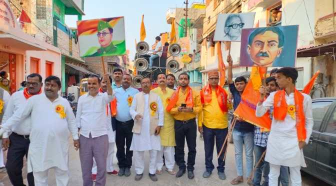 शोभायात्रा आरंभ होने के पूर्व इस शोभायात्रा में शामिल बतौर मुख्य अतिथि सदर विधायक माननीय जै किशन साहू एवं समाजवादी पार्टी के जिलाध्यक्ष रामधारी यादव एवं पूर्व जिलाध्यक्ष राजेश कुशवाहा का स्मृति चिन्ह अंगम् वस्त्रम् एवं कलम लेकर सम्मानित किया गया।