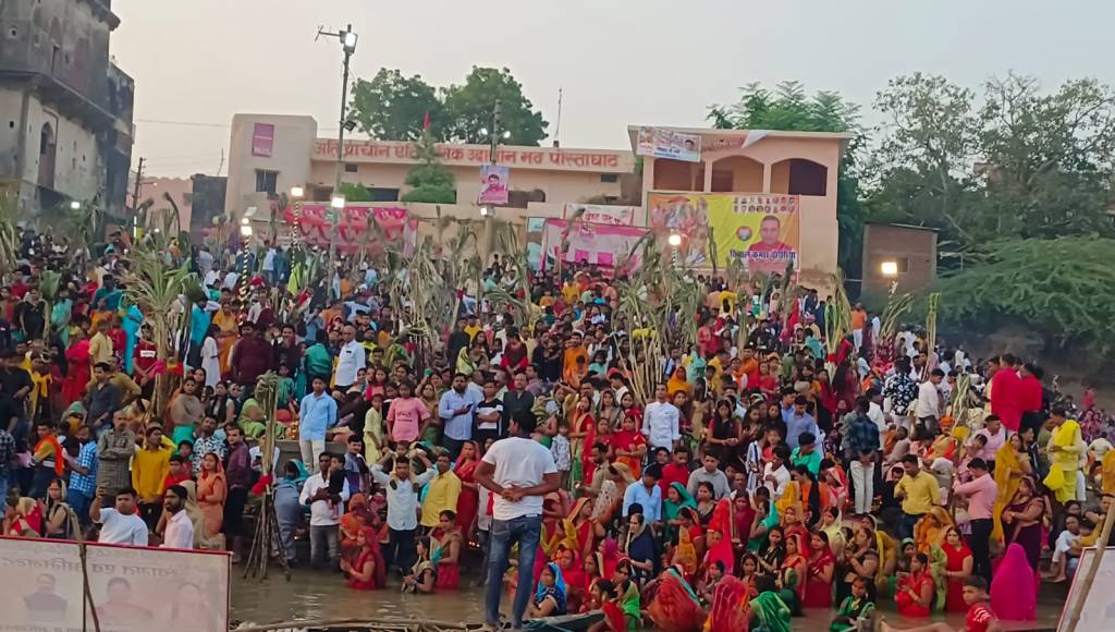 सूर्य देव के साथ-साथ छठी मैया की पूजा का विधान है। इस व्रत में सूर्य और षष्ठी माता दोनों की उपासना होती है। इसलिए इसे सूर्यषष्ठी भी कहा जाता है। दिन में छठी व्रतियों ने गेहूं, घी व शक्कर का ठेकुआ, चावल, घी और शक्कर का लड्डू प्रसाद के लिए बनाया। बांस के बने सूप डाला, दौरा, टोकरी में प्रसाद को रखा गया। इसके साथ ही प्रसाद के रूप में सेब, केला, अमरूद, नींबू सहित अन्य फल प्रसाद के रूप में रखे गए। उगते हुए सूर्य को अर्घ्य देने के लिए छठ व्रती सूर्य उदय से पहले ही घाट पहुंचने लगेंगे। उगते सूर्य को अर्घ्य देने के बाद 36 घंटे का कठिन व्रत का पारण होगा। घरों से लेकर घाटों तक भक्तिपूर्ण माहौल बना रहा। छठ महापर्व की तैयारियां घरों में कई दिनों से चल रही थी। घरों से लेकर घाटों तक भक्ति के गीत गूंजते रहे। शहर के ददरीघाट, कलेक्टर घाट, गोलाघाट, चीतनाथ घाट और नवापुरा घाट सहित विभिन्न घाटों को भक्तिमय गीतों ने माहौल ने भक्तिमय बना दिया। इस दौरान घाटों पर पुलिस प्रशासन पूरी तरह मुस्तैद दिखा।
