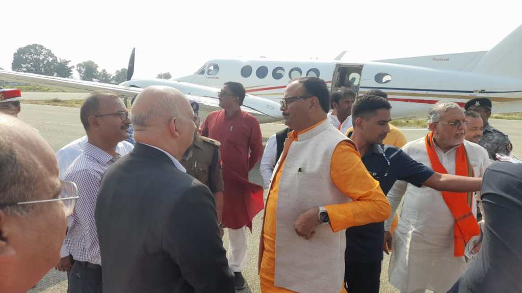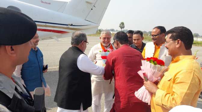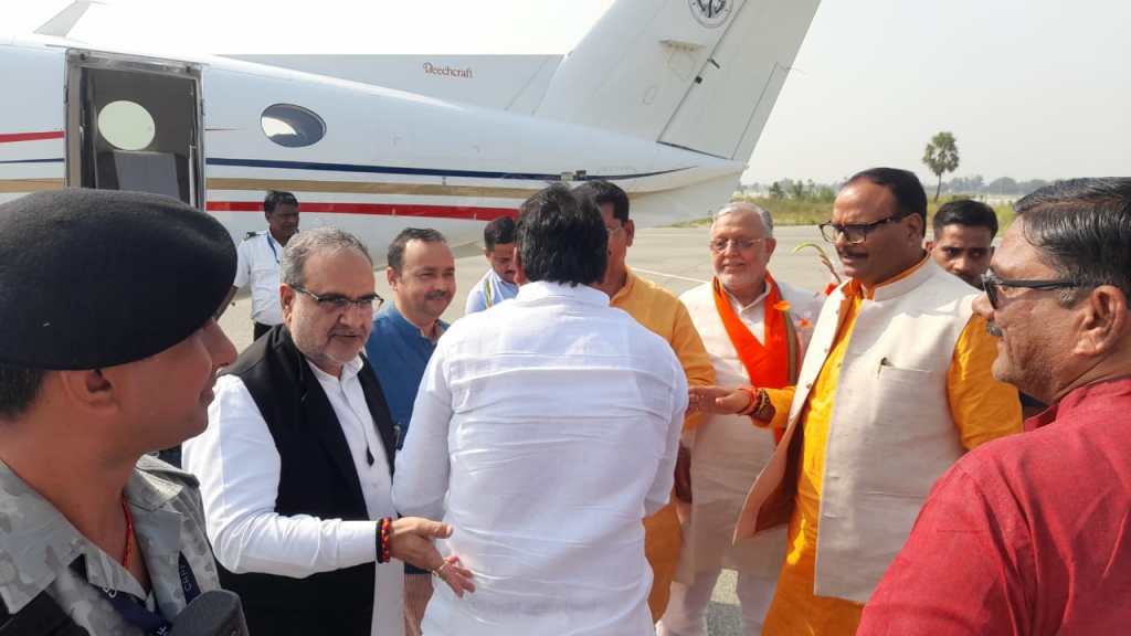 गाजीपुर। उत्तर प्रदेश सरकार के उप मुख्यमंत्री ब्रजेश पाठक, भाजपा प्रदेश अध्यक्ष भूपेन्द्र चौधरी, कैबिनेट मंत्री सुरेश खन्ना और सहकारिता राज्य मंत्री स्वतंत्र प्रभार जेपीएस राठौर मंगलवार को जम्मू कश्मीर के उप राज्यपाल मनोज सिन्हा के पैतृक घर पर आयोजित भंडारे मे भाग लेने के लिए मुहम्मदाबाद के मोहनपुरा जाने के लिए लखनऊ से एक ही साथ हवाई जहाज से अंधऊ हवाई अड्डे पर अपराह्न 1 बजे पहुंचे। जहाँ भाजपा जिलाध्यक्ष भानुप्रताप सिंह एवं जिला प्रभारी अशोक मिश्रा के नेतृत्व मे स्वागत अभिनन्दन किया गया। इस अवसर पर नगर पालिका अध्यक्ष सरिता अग्रवाल, क्षेत्रीय उपाध्यक्ष सरोज कुशवाहा, डा विजय यादव, विनोद अग्रवाल, प्रो शोभनाथ यादव, प्रवीण सिंह, पंकज सिंह चंचल, राजेश राजभर, संकठा मिश्रा, अखिलेश सिंह, जिला मीडिया प्रभारी शशिकान्त शर्मा, राजन प्रजापति, पप्पू सिंह, सुरेश बिंद, डा अरविन्द मिश्रा प्राचार्य मेडिकल कालेज, डा संचीत, डा अभिषेक सिंह, मुख्य विकास अधिकारी श्री प्रकाश गुप्ता, पुलिस अधीक्षक नगर गोपीनाथ सोनी, तहसीलदार अभिषेक , प्रतिभा मिश्रा एसडीएम, गौरव कुमार क्षेत्राधिकारी, हेमंत राव बीएसए, जिला पंचायत अध्यक्ष मऊ मनोज राय, अशोक सिंह, उत्पल राय और संजीव जायसवाल आदि लोग उपस्थित थे।