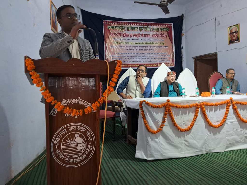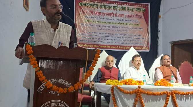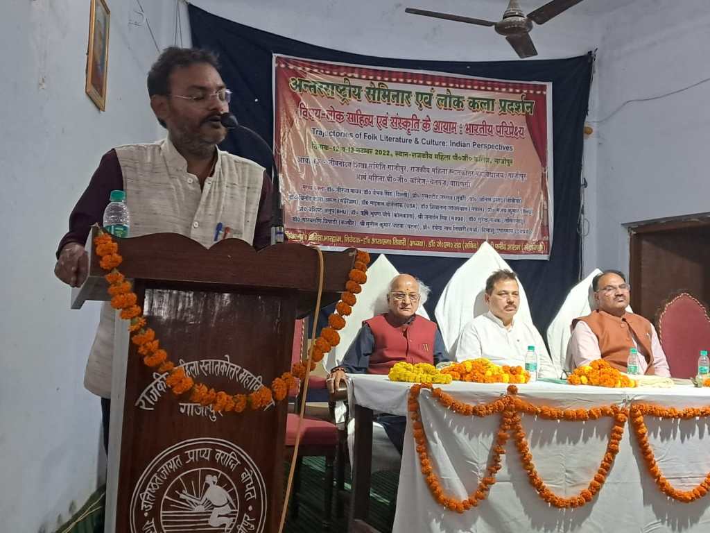 गाजीपुर। लोक साहित्य तथा संस्कृति के आयाम भारतीय परिप्रेक्ष्य विषय पर अंतरराष्ट्रीय संगोष्ठी महिला पीजी कॉलेज में दूसरे दिन रविवार को भी जारी रही। प्रथम सत्र में प्रमुख वक्ता के रूप में प्रोफेसर आनंद सिंह ने कहा कि लोक को समझने के लिए सामंती प्रवृत्ति से छुटकारा पाना होगा ताकि नए सिरे से जनतांत्रिक और समावेशी प्रक्रियाओं का निर्माण कर संस्थाएं गढी जा सके। नेपाल से आए शिवनंदन जयसवाल ने भोजपुरी के विस्तार हेतु सार्थक प्रयास किए जाने पर बल दिया। गुजरात से चौधरी विमल कुमार बाबू सिंह ने दक्षिण गुजरात की बासवा जनजाति के लोकगीतों पर अपने शोध पत्र का वाचन किया। केंद्रीय विश्वविद्यालय रांची के शोध छात्र राकेश कुमार ने जनजातियों परंपराओं के विश्लेषण से संबंधित शोध पत्र प्रस्तुत किया। नई दिल्ली से आई शोध छात्रा विजयलक्ष्मी ने एड्स जागरूकता हेतु संचार माध्यमों की उपादेयता पर अपना शोध पत्र पढ़ा। जनसत्ता के संपादक सूर्यनाथ सिंह ने लोक को बाजार द्वारा हडपे जाने की प्रक्रिया की विवेचना की। सत्र की अध्यक्षता कर रहे ज्योतिष जोशी ने संस्कृति के विचार और लोक पक्ष पर बात की। इस सत्र में वंशिका सिंह, सुजीत कुमार सिंह, अंजली सिंह इत्यादि ने भी शोध पत्र का वाचन किया। इस तकनीकी सत्र का संचालन डॉ संतन कुमार राम ने किया। दूसरे सत्र के मुख्य वक्ता लीबिया के प्रोफेसर अनिल प्रसाद रहे। इन्होंने अपने कांतापुरा उपन्यास के माध्यम से कहानी कहने की लोक परंपरा की नई शैली को उद्घाटित किया। इनके अनुसार बच्चों को लोक कथाओं को बताने से उनकी निर्णय लेने की क्षमता बढ़ती है तथा अपने प्रकृति एवं आसपास के प्रति जिज्ञासा एवं सूझ का विकास होता है।