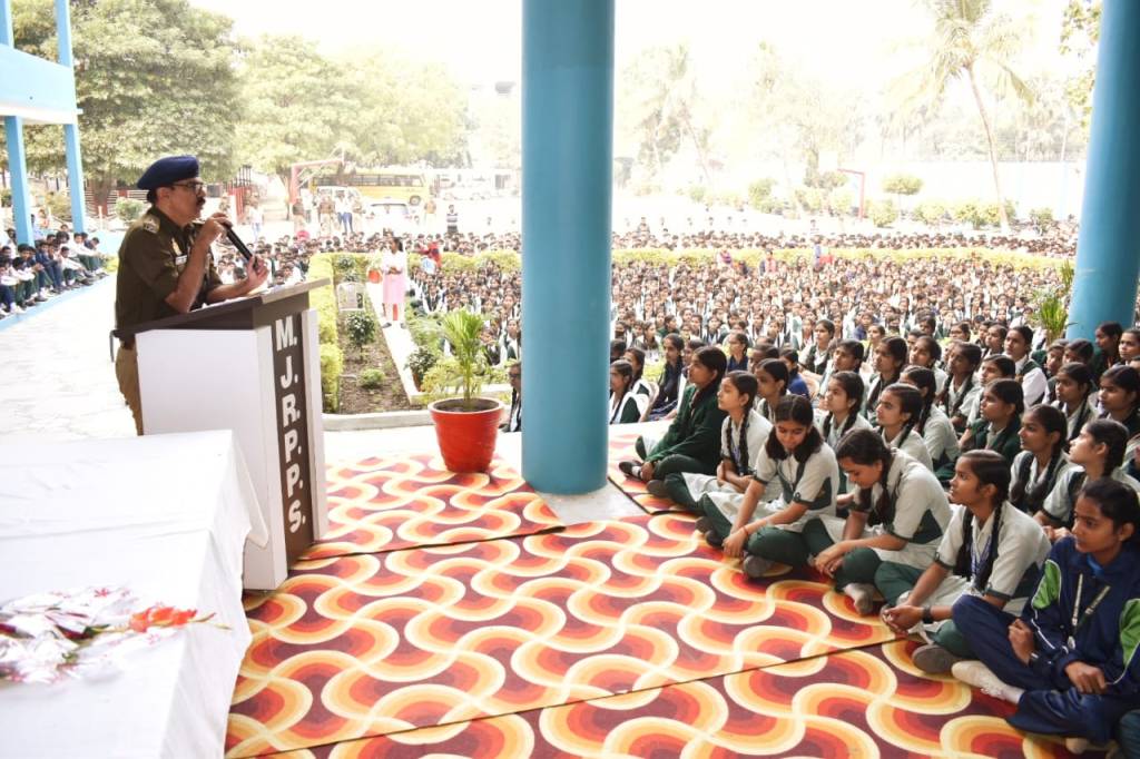 गाजीपुर। गुरुवार को एसपी ओमवीर सिंह ने एमजेआरपी पब्लिक स्कूल में यातायात नियमों के प्रति जागरूकता कार्यक्रम के तहत बच्चों को यातायात नियमों की जानकारी दी। उन्होंने बच्चों से यातायात नियमों का पालन खुद करने व उनके माता पिता को इन नियमों का पालन करवाने के लिए प्रेरित किया। इस दौरान स्कूल के बच्चों द्वारा यातायात नियमों से संबंधित कुछ सवाल एसपी से किया गया। बच्चों का सवाल सुनकर एसपी ने जवाब दिया। इस दौरान विभिन्न पुलिस हेल्पलाइन नंबरों को वहां उपस्थित छात्र छात्राओं को बताया गया तथा उसके प्रति जागरूक किया गया। एसपी ने बच्चों से साइबर अपराध तथा उससे बचने के उपायों एवं सोशल मीडिया का उपयोग सावधानीपूर्वक करने के लिए जागरूक किया। इस यातायात जागरूकता अभियान के दौरान स्कूल में क्षेत्राधिकारी यातायात गौरव कुमार, यातायात प्रभारी ब्रिज मोहन अपने पुलिसकर्मियों संग मौजूद रहे। इस दौरान शहर के विभिन्न चौराहे पर चेकिंग की गई जिसमें 247 चालान व 11500 शमन शुल्क किया गया।