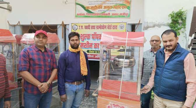 जिला खादी ग्राम उद्योग विभाग द्वारा पॉपकॉर्न मशीन का किया गया वितरण।