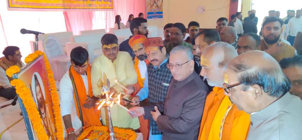 गाजीपुर। ब्राह्मण सनातन संस्कृति का ध्वजवाहक है अपनी त्याग, तपस्या एवं बलिदान के बल पर वह निरन्तर समाज का नेतृत्व करता रहा है। ब्राह्मणत्व के बल पर ही वसुधैव कुटुम्बकम के आदर्श को प्रतिस्थापित किया जा सकता है। रामराज्य की परिकल्पना की धुरी ब्राह्मण को बनना होगा। समाज को शैक्षिक, सामाजिक, राजनैतिक, सांस्कृतिक, उत्थान के लिए यह आवश्यक है कि हम सभी एक होकर मार्गदर्शन एवं नेतृत्व करें। उक्त बातें उच्च शिक्षा परिषद उत्तर प्रदेश के अध्यक्ष एवं बीएचयू के पूर्व कुलपति प्रोफेसर गिरीश चंद्र त्रिपाठी ने रविवार को लंका मैदान के सभागार में ब्राह्मण जन सेवा मंच मे 6वें स्थापन दिवस समारोह में बतौर मुख्य अतिथि के रूप में कहा। इस समारोह का शुभारंभ मुख्य अतिथि ने भगवान परशुराम की प्रतिमा पर माल्यार्पण कर एवं दीप प्रज्जवलित कर किया। मुख्य अतिथि के सम्मान में पुष्कर उपाध्याय एवं गणेश मिश्र गोलू ने स्वागत गान प्रस्तुत किया। जनसेवा मंच के संयोजक प्रदीप चतुर्वेदी ने मंच की आख्या प्रस्तुत करते हुए स्वागत सम्बोधन किया।