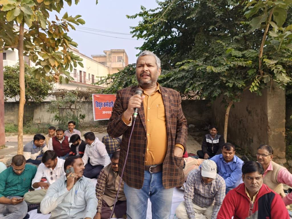 विद्युत कर्मियों का जारी है कार्य बहिष्कार।
