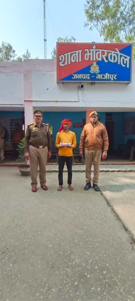 गाजीपुर। थाना भांवरकोल का हिस्ट्रीशीटर और शातिर लुटेरे को अवैध तमंचा और कारतूस के साथ गिरफ्तार किया गया। गुरूवार को उ0नि0 ओमकार तिवारी ने मुखबिर की सूचना पर हरिजन बस्ती ग्राम मलिकपुरा जाने वाली सड़क बहद ग्राम मलिकपुरा के पास से लूटेरा और हिस्ट्रीशीटर अमित कुमार पुत्र श्री निवास राम ग्राम मलिकपुरा थाना भाँवरकोल को एक तमंचा .315 बोर और 3 अदद जिन्दा कारतूस 315 बोर के साथ शाम को गिरफ्तार किया। गिरफ्तार अभियुक्त के उपर भांवरकोल थाना में कई मामलों में मुकदमा दर्ज है।