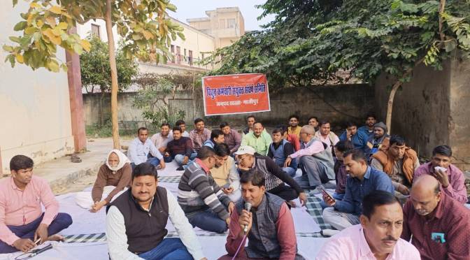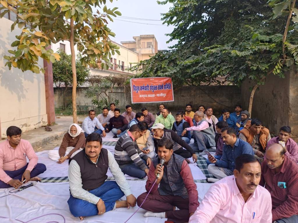 गाजीपुर। विद्युत कर्मचारी संयुक्त संघर्ष समिति के तत्वाधान में शनिवार को पांचवे दिन भी विद्युत कर्मियों का धरना जारी रहा। इस दौरान सह संयोजक मिथिलेश यादव ने बताया कि विद्युत कर्मियों का पंद्रह सूत्रीय मांगो को लेकर मुख्यमंत्री के निर्देशन पर ऊर्जा मंत्री ने ऊर्जा प्रबंधन एवम विद्युत कर्मचारी संयुक्त संघर्ष के प्रतिनिधियों संग बैठक जारी है। आगे उन्होंने यह भी बताया कि ऊर्जा चेयरमैन एम देवराज को तत्कल हटाकर उसके संपत्ति की जांच कराई जाय ताकि विद्युत कर्मियों में बना भय समाप्त हो और स्वच्छ वातावरण में अपने कार्य को संपादित कर सके। जिला मंत्री विजयशंकर राय ने सरकार से मांग करते हुवे बताया कि हमारे संविदा/निविदा कर्मियों को पंजाब, तेलगाना, उड़ीसा, दिल्ली के तर्ज पर विभाग में समायोजित करके नियमित किया जाय, आज के दौर में यही निविदा कर्मी अपने जान को जोखिम में डालकर आम जनता के सेवा के लिए दिन रात मेहनत करते है और इन लोगो को श्रम विभाग के द्वारा न्यूनतम मजदूरी नहीं दी जाती है। इन लोगो के पैसे का बंदरबाट ऊर्जा चेयरमैन एवं ठेकेदार मिलकर कर रहे है। खुलेआम दलाली ऊर्जा प्रबंधन ठेकेदारों से मिलकर कर रहा है और हमारे मुखमंत्री इस पर चुप्पी साधे हुवे है। कर्मी मुख्यमंत्री से मांग करते है की उत्तर प्रदेश में आबादी को देखते हुवे सभी संविदा/निविदा, मीटर रीडरो को विभाग में नियमित करने के लिए तत्काल कदम उठाए। सभी निविदा एवम मीटर रीडर कर्मियों को साल भर से बकाया ईपीएफ बिलिंग एजेंसी स्टर्लिंग कंपनी एवम भारत इंटरप्राइजेज द्वारा तत्काल भुगतान किया जाय। यही सब मांगों को लेकर कर्मचारियों एवम अधिकारियों में रोष व्याप्त है, जिससे यही सब मांगों को लेकर धरना विद्युत कर्मचारी संयुक्त संघर्ष समिति के तत्वाधान में चल रहा है। धरने में मुख्य रूप से अधिशाषी अभियंता संजय सिंह,मनीष कुमार,हेमंत सिंह,आशीष चौहान,चंद्रपाल सिंह सहायक अभियंता शेखर सिंह,मिठाई लाल,सुधीर कुमार,विजय यादव,कमलेश कुमार,अवर अभियंता पंकज चौहान,हर्षित राय,रमेश मौर्य,चित्रसेन प्रसाद,विनोद राम, शैलेंद्र ओझा,शशिकांत पटेल,महबूब अली,इंद्रजीत पटेल विद्युत मजदूर पंचायत के ,जिला मंत्री विजयशंकर राय,भानु सिंह,विनय तिवारी,अश्वनी सिंह,प्रवीण सिंह,प्रवीण पाण्डेय,गोविंद कुशवाहा,शशिकांत मौर्य,ज्योतिकांत कुशवाहा,राजेश सिंह,जीवन वर्मा,अनीश अहमद,शशिकांत भारती,शिवशंकर,जवाहिर पटवा,बरूण राय,राकेश चौबे, इबरार अहमद, नईम अहमद सहित सैकड़ों विद्युत कर्मी,संविदा/निविदा कर्मी मौजूद रहें। कार्यक्रम की अध्यक्षता ई0 संतोष चौधरी एवं संचालन ई0 मिथिलेश यादव ने किया।