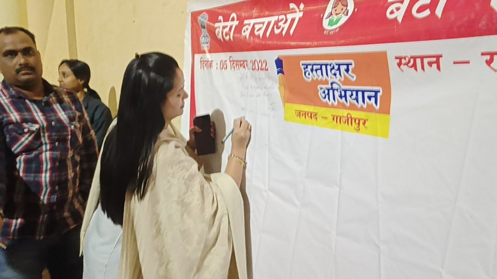 उन्होने जनपद मे एन्टी रोमियो स्क्वायर्ड की सक्रियता की जानकारी ली तथा एण्टी रोमियो स्क्वायर्ड को सक्रिय रहने का निर्देश दिया। जिलाधिकारी ने कन्या भ्रूण हत्या रोकने हेतु समस्त ब्लाको मे महिला शक्ति केन्द्र द्वारा समूह की महिलाओं एवं आगनबाड़ी कार्यकत्री, शिक्षिकाओं को भ्रूण हत्या रोकथाम के लिए जागरूक करने के साथ डायग्नोस्टिक सेन्टर पर जांच कर यह पता लगाया जाये की कही यहा लिंग परिक्षण तो नही हो रहा है, इसके लिए लोगो मे प्रचार-प्रसार के साथ मुखबिर को अलर्ट मोड में रखने का निर्देश दिया। बैठक में जिलाधिकारी ने ड्राप आउट किशोरियों के चिन्हिकरण व उनके अभिभावको को उनकी शिक्षा पूरी करने हेतु अभियान चलाकर व ड्राप आउट किशोरियों की शिक्षा को नियमित करने पर चर्चा की गयी। इसी क्रम में जिलाधिकारी की अध्यक्षता में समेकित बाल संरक्षण योजनान्तर्गत गठित जिला बाल संरक्षण समिति की बैठक सम्पन्न हुई। बैठक में मुख्यमंत्री सेवा योजना कोविड-19 , मुख्यमंत्री बाल सेवा योजना (सामान्य), स्पान्सरशिप कार्यक्रम मे चयनित बच्चो हेतु जिला समिति द्वारा अनुमोदन की समीक्षा, किशोर न्याय बोर्ड मे लंबित केसो की समीक्षा, बाल विवाह की घटना एंव रोक थाम एवं अन्य बिन्दुओ पर विस्तारपूर्वक चर्चा की गयी। जिलाधिकारी ने सरकार द्वारा चलायी जा रही समस्त योजनाओ का लाभ प्रत्येक पात्र तक पहुचाने का निर्देश सम्बन्धित विभागीय अधिकारियों को दिया। उन्होने कहा कि समस्त विभाग आपसी सामन्जस्य स्थापित करते हुए प्रत्येक पात्रो को योजनाओ का लाभ देते हुए शासन के मंशा के अनुरूप कार्य करें। बैठक के अन्त मेे जिला पंचायत अध्यक्ष सपना सिंह, जिलाधिकारी आर्यका अखौरी एंव समस्त समिति के सदस्यो ने ‘‘बेटी बचाओ बेटी पढाओ‘‘ योजनान्तर्गत हस्ताक्षर अभियान का शुभारम्भ राइफल क्लब से किया। बैठक में जिला प्रोबेशन अधिकारी, महिला कल्याण अधिकारी एवं सम्बन्धित अधिकारी, समिति के सदस्यगण उपस्थित रहे।