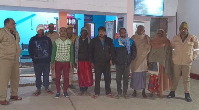 गाजीपुर। भांवरकोल थाना पुलिस ने 7 जुआरियों को गिरफ्तार किया। गिरफ्तार जुआरियों के पास से 17484 रुपया बरामद किया गया। मंगलवार को मुखबिर की सूचना पर उ0नि0 विकास सिंह ने अपने पुलिस कर्मियों के साथ मिलकर ताड व आंवले का बगीचा वहद ग्राम मसोन से 7 जुआरियो को 610 रुपया माल फड, 17484 रुपया, एक प्लास्टिक की तिरपाल, एक गमछा, ताश की दो गड्डी खुली हुई, दो गड्डी पैक्ड, एक अपाचे मोटरसाईकिल और 3 मोबाइल के साथ गिरफ्तार किया। मौके से जुआ खेलवाने वाले योगेश राय उर्फ पिन्कू राय पुत्र गोविन्द राय निवासी नरायनपुर थाना नरही जनपद बलिया व एक अन्य अभियुक्त रोहित कुमार राय पुत्र विनोद कुमार राय निवासी नरायनपुर थाना नरही जनपद बलिया भागने में कामयाब रहे।