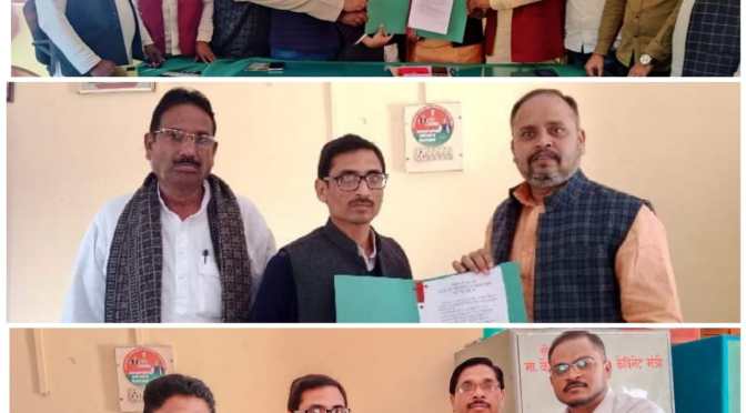 गाजीपुर। उत्तर प्रदेश में नगर निकाय चुनावों का ऐलान अब किसी भी वक्त हो सकता है। ऐसे में चुनाव लड़ने के इच्छुक अपनी तैयारियों में भी जुट गए हैं। जिले में होने वाले नगर निकाय के चुनाव हेतु समाजवादी पार्टी द्वारा मांगे गए आवेदन पत्र इच्छुक लोगों से मांगी गई। इसी क्रम में मंगलवार को समाजवादी पार्टी के तमाम पदाधिकारियों एवं कार्यकर्ताओं ने दर्जनों समर्थकों संग अपना आवेदन पत्र सदर विधानसभा के अध्यक्ष तहसीन अहमद के समक्ष प्रस्तुत किया। गाजीपुर नगर पालिका परिषद के अध्यक्ष पद हेतु आवेदन पत्र डा. समीर सिंह, अरुण कुमार श्रीवास्तव, दिनेश यादव और अतीक अहमद राईनी ने प्रस्तुत किया। इस दौरान सभासद पद के लिए भी तमाम कार्यकर्ताओं ने अपना आवेदन दिया। बता दें कि आवेदन देने के लिए दिनभर पार्टी कार्यालय समता भवन पर गहमागहमी रही।