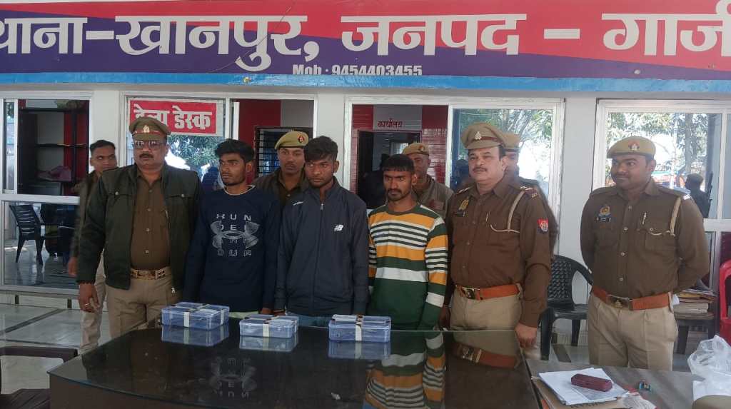 गाजीपुर। खानपुर पुलिस ने तीन अपराधियों को गिरफ्तार कर पिस्टल, देशी तमंचा, कारतूस बरामद किया। खानपुर थाना पुलिस ने शुक्रवार को वाहन चेकिंग के दौरान मोटर साईकिल सवार तीन व्यक्ति को उचौरी पाखीपुर बार्डर के बहदग्राम के पास से गिरफ्तार कर लिया। पकडे गये व्यक्तियो से नाम पता पूछा गया तो उन्होंने अपना नाम नरेन्द्र राजभर उर्फ छोटू पुत्र चन्द्रिका राजभर निवासी नसीरपुर थाना सैदपुर उम्र 22 वर्ष, भगवानदास पुत्र लालजी राम निवासी दुर्जनपुर थाना सैदपुर उम्र करीब 21 वर्ष, कुतुबुद्दीन पुत्र मो0 वकील निवासी ग्राम माहपुर थाना सैदपुर उम्र 22 वर्ष बताया। गिरफ्तार व्यक्तियो की तलाशी लेने पर 1 देशी पिस्टल .32 बोर, 2 जिन्दा कारतूस 32 बोर, 2 तमंचा देशी .315 बोर और 2 जिंदा कारतूस .315 बोर बरामद हुआ। देशी पिस्टल व तंमन्चा कारतूस के सम्बन्ध मे थाना पर तीनों के खिलाफ मुकदमा पंजीकृत किया गया है।