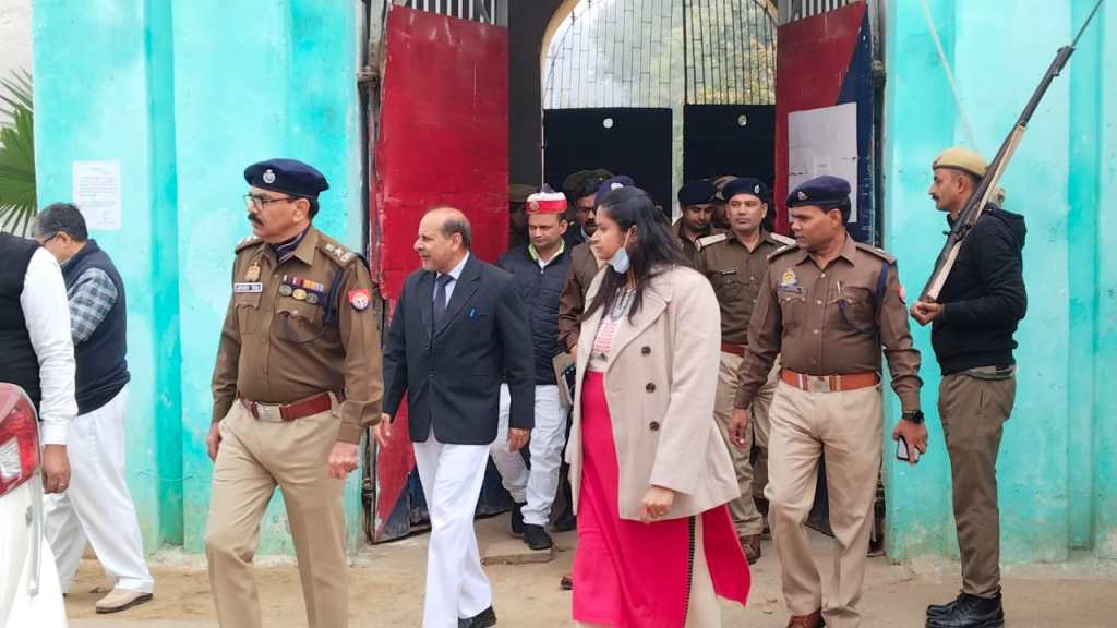 गाजीपुर। बुधवार को जिला कारागार का जिला जज, जिलाधिकारी आर्यका अखौरी और पुलिस अधीक्षक ओमवीर सिंह ने निरीक्षण किया। निरीक्षण के दौरान जिलाधिकारी ने कारागार चिकित्सालय मे भर्ती कैदियों से बीमारियो के सम्बन्ध मे पूछा तथा उनके खान-पान एवं साफ-सफाई की जानकारी ली। जिला कारागार के हवालात कार्यालय के स्टाक रजिस्टर की जांच की। इसके पश्चात बारी-बारी से सभी बैरको का निरीक्षण किया। बैरको मे बन्दियो के कार्ड पर अगली पेशी का दिनांक चेक किया। कारागार मे रसोई घर के निरीक्षण मे आज के दिन में बनने वाले भोजन के मीनू की जानकारी ली। इस दौरान पुलिस अधीक्षक ने जेल अधीक्षक को निर्देश दिया कि जेल के अन्दर किसी भी दशा मे मोबाइल का प्रवेश न होने पाये। इस हेतु रोस्टर बनाकर चेंकिग अभियान चलाकर चेक किया जाए। इसके अतिरिक्त महिला बन्दी गृह मे दी जा रही सुविधाओ के बावत जानकारी ली।