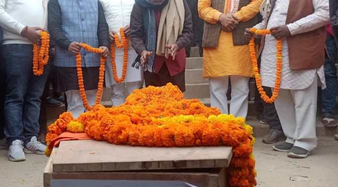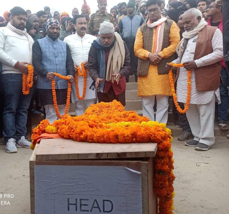 बीएसएफ जवान विनोद पांडेय पंचतत्व मे विलिन, भाजपाइयों ने दी श्रद्धांजलि।