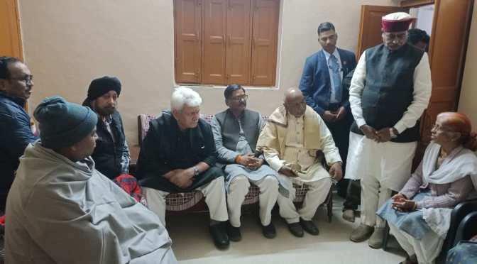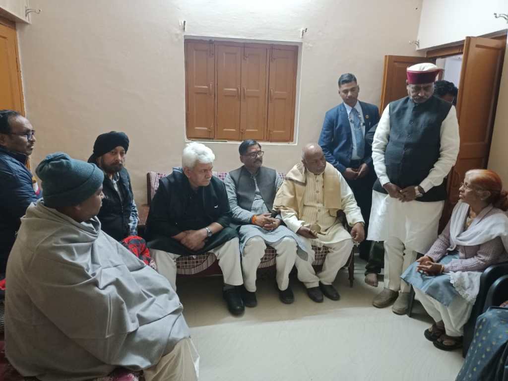 गाजीपुर। जम्मू कश्मीर के उपराज्यपाल मनोज सिन्हा शनिवार की शाम अपने दो दिवसीय व्यस्त कार्यक्रम के बीच गाजीपुर पहुंचे। जहाँ उन्होंने नगर के हरिशंकरी मुहल्ले के निवासी अपने मित्र एडवोकेट स्व. योगेश वर्मा दादा के निधन पर उनके घर पहुंच कर शोक संतृप्त परिजनों से भेंट कर अपनी संवेदना व्यक्त किया तथा उन्हें ढाढस बधाया। इस अवसर पर जिलाध्यक्ष भानुप्रताप सिंह, कृष्णबिहारी राय, ओमप्रकाश राय, विनोद अग्रवाल, प्रवीण सिंह, कार्तिक गुप्ता, मयंक तिवारी, राकेश राय, असित सेठ, बबलू सरदार आदि लोग उपस्थित रहें।