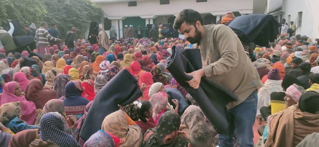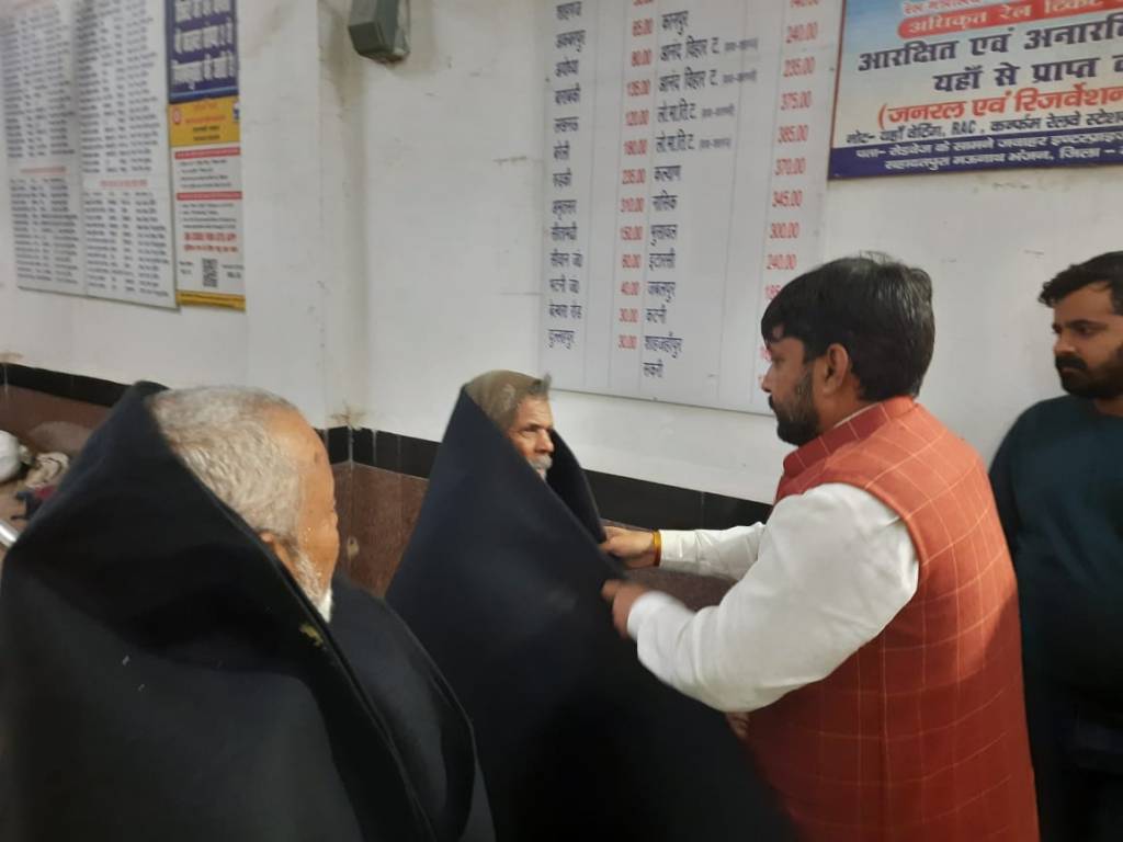 घोसी सांसद अतुल राय के प्रतिनिधि एवं उनके टीम के द्वारा गरीब असहाय लोगों के बीच किया गया कंबल वितरण