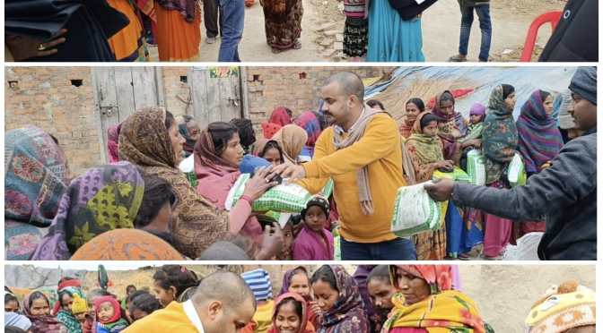 मऊ। मकर संक्रान्ति पर घोसी लोकसभा में सांसद अतुल राय की टीम ने वनवासी व दलित बस्तियों और ज़रूरत मंदो में स्वेटर, जैकेट, टोपी, मोजा मोफलर, खिचड़ी, लायी, चूड़ा और मिठाइयों का वितरण किया। बता दें कि मौसम विभाग की तरफ़ से 16 जनवरी से मऊ ज़िले में शीत लहर की सम्भावना जताई है। जिसको देखते हुए अतुल राय के लोगों ने इन बस्तियों में रहने वाले 500 बच्चों को गर्म कपड़े , स्वेटर, मोज़ा और टोपी का वितरण किया। इस दौरान बहुजन समाज पार्टी की राष्ट्रीय अध्यक्ष मायावती के जन्मदिन को जनकल्याणकारी दिवस के रूप में मानते हुए ज़रूरत मंदो के बीच कम्बल का भी वितरण किया गया। विनीत ने बताया की सांसद के निर्देश पर आज मकर संक्रांति के शुभ अवसर पर 5 कुंतल खिचड़ी के साथ साथ गर्म कपड़े , टोपी, मोजा मोफलर, लायी, चूड़ा और मिठाइयों का वितरण कर के घोसी लोकसभा के गरीब और असहाय परिवारों में किया गया।