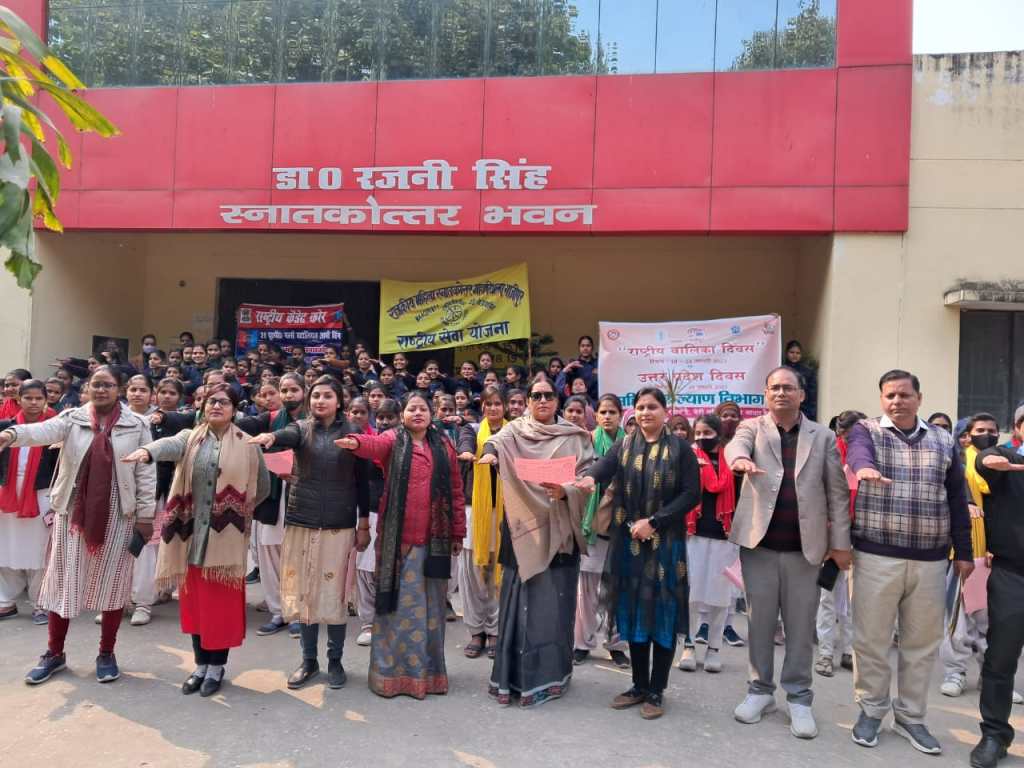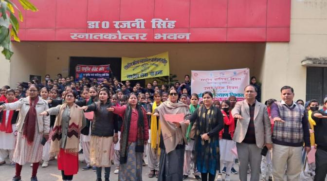 राष्ट्रीय बालिका सप्ताह के तहत महाविद्यालय में 19 जनवरी को एक पेंटिंग प्रतियोगिता भी आयोजित की गई है। कार्यक्रम की अध्यक्षता करते हुए प्राचार्य डॉ सविता भारद्वाज ने बेटियों को साक्षर ही नहीं बल्कि सुशिक्षित बनाने आर्थिक रूप से स्वावलंबी बनाने तथा विभिन्न उपायों के माध्यम से सशक्तिकरण करते हुए समाज की मुख्यधारा में पुरुषों के बराबर कंधे से कंधा मिलाकर चलने की बात की। कहा कि इसमें शासन-प्रशासन एवं स्थानीय समुदाय भी बराबर रूप से शामिल हो तभी बात बनेगी। कार्यक्रम का संचालन आइक्यूएसी प्रभारी डॉ संतन कुमार राम तथा संयोजन एवं आभार ज्ञापन महिला प्रकोष्ठ की प्रभारी डॉ अनिता कुमारी ने किया। इस अवसर पर प्रज्ञा रेंजर्स, राष्ट्रीय सेवा योजना एवं एनसीसी से जुड़ी छात्राएं, महाविद्यालय के मीडिया एवं रेंजर प्रभारी डॉ शिव कुमार, एनसीसी अधिकारी लेफ्टिनेंट डॉक्टर शशिकला जयसवाल, राष्ट्रीय सेवा योजना के कार्यक्रम अधिकारी डॉ अमित यादव, डॉ संगीता, डॉ गजनफर सईद, डॉ राजेश यादव, डॉ हरेंद्र यादव, डॉ सारिका सिंह, डॉ अभिषेक सिंह सहित सभी प्राध्यापक कर्मचारी एवं छात्राएं उपस्थित रहे।महिलाओं के विरूद्ध हो रही हिंसा को समाप्त करने के लिये और जागरूक करने के लिए आपातकालीन टोल फ्री नं0 जैसे 181, 1090, 112, 1098, 1076 आदि के बारें मे भी जानकारी दी गई।