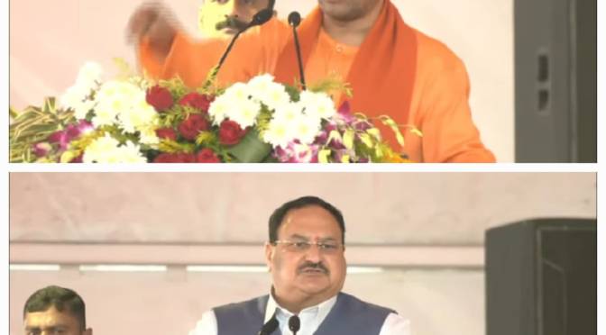 गाजीपुर। शुक्रवार को आईटीआई मैदान में राष्ट्रीय अध्यक्ष जेपी नड्डा और मुख्यमंत्री योगी आदित्यनाथ जनसभा को सम्बोधित करते हुए। इस दौरान मंच पर प्रदेश अध्यक्ष भूपेंद्र चौधरी, सांसद विरेंद्र सिंह मस्त, एम एल सी विशाल सिंह चंचल, जिला पंचायत अध्यक्ष सपना सिंह, सांसद दिनेश लाल यादव निरहुआ, पूर्व मंत्री विजय मिश्रा, पूर्व विधायक सुनीता सिंह, पूर्व विधायक संगीता बलवंत, पूर्व विधायक अलका राय, जिला अध्यक्ष भानु प्रताप सिंह मौजूद हैं।