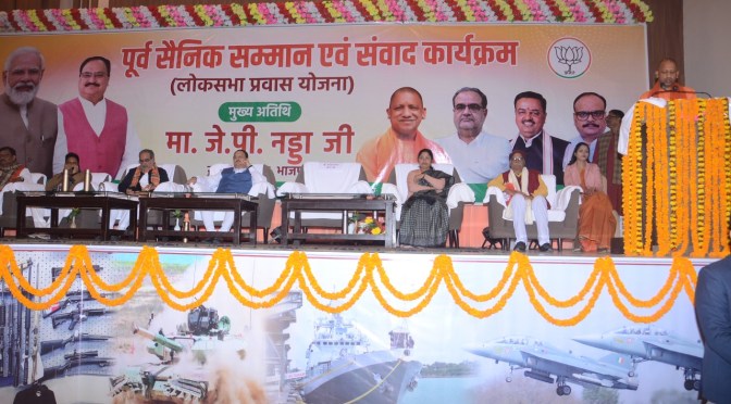 भाजपा राष्ट्रीय अध्यक्ष जेपी नड्डा ने गाजीपुर में पूर्व सैनिकों से संवाद कर किया सम्मानित