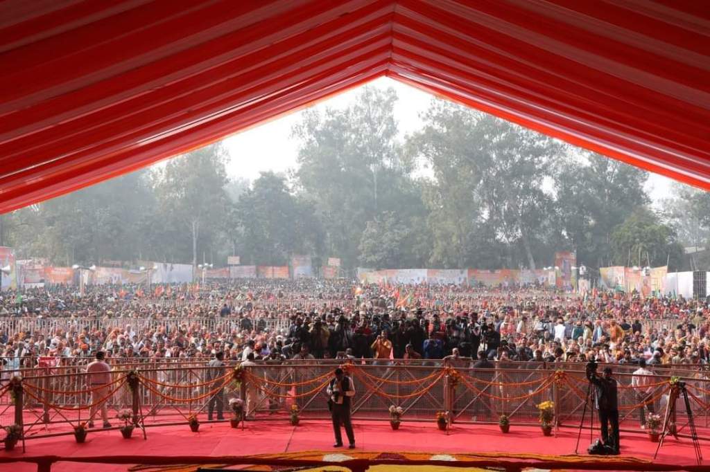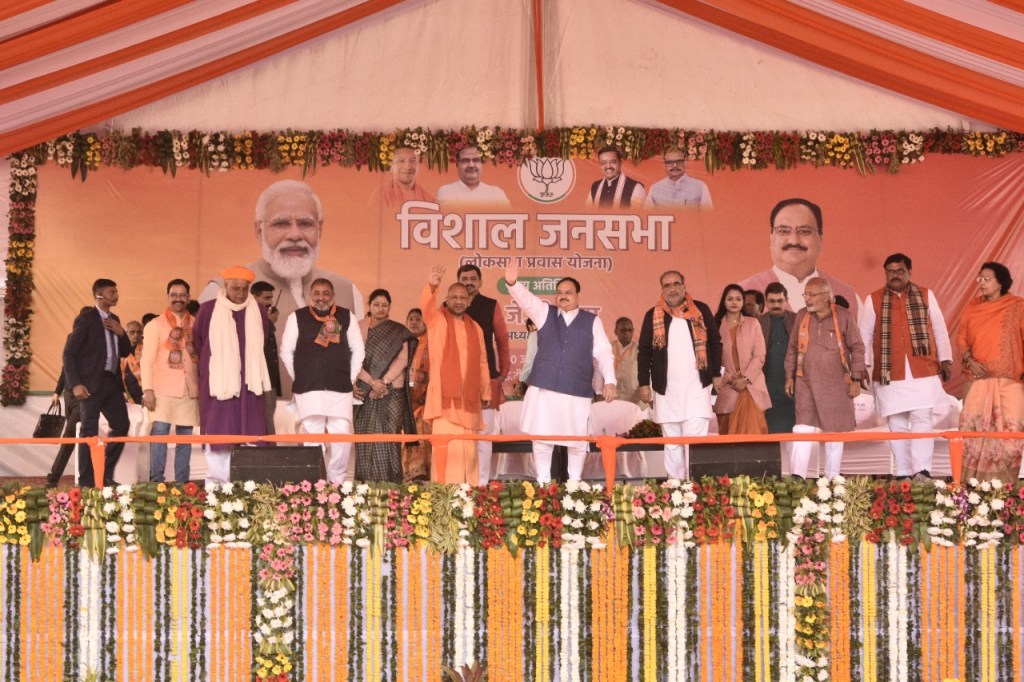 इस क्रम को निरन्तरता दे सके, इसी का आह्वाहन करने के लिए आज मै यहां आया हूॅ। उन्होने कहा कि जाति, धर्म मजहब की राजनीति कभी किसी का कल्याण नही कर सकती। हमारी सरकार सबका साथ-सबका विकास के मार्ग पर चलते हुए बिना भेद भाव के कार्य किया है, और करती रहेगी। भाजपा के राष्ट्रीय अध्यक्षत जे0पी नड्डा ने जनसभा को सम्बोधित करते हुए जनपद में डबल इंजन की सरकार द्वारा कराये गये विकास कार्याे के बारे उपस्थित जन सामान्य को विस्तृत रूप से बताया। इसके पूर्व राष्ट्रीय अध्यक्ष एवं मुख्यमंत्री द्वारा ग्राम कुर्था स्थित पवहारी बाबा आश्रम मे दर्शन पूजन किया गया।