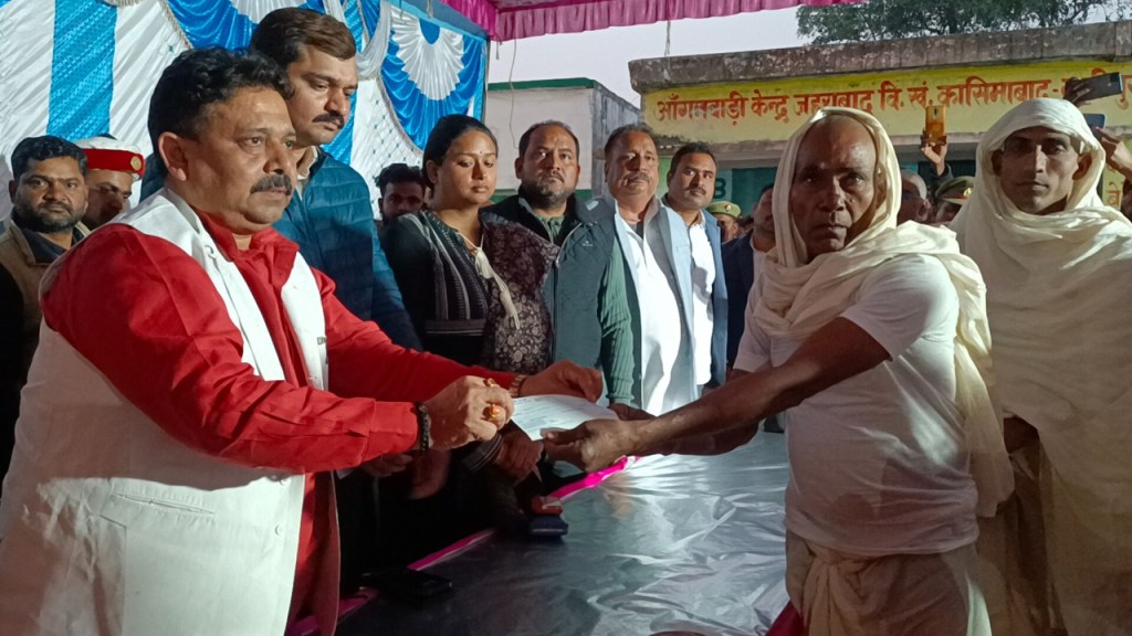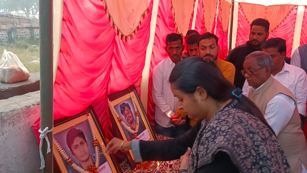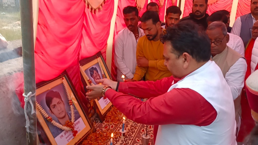 गाजीपुर।पड़ोसी देश नेपाल के पोखरा नामक स्थान पर वायुयान दुर्घना में मृत 4 व्यक्तियों जिसमें अभिषेक कुशवाहा पुत्र चन्द्रमा कुशवाहा उम्र 26 वर्ष निवासी ग्राम धरवॉ तहसील कासिमाबाद, सोनू जायसवाल पुत्र राजेन्द्र जायसवाल उम्र-32 वर्ष निवासी ग्राम चकजैनब तहसील कासिमाबाद,विशाल शर्मा पुत्र संतोष शर्मा उम्र-27 वर्ष निवासी ग्राम अलावलपुर अफगां तहसील कासिमाबाद एंव अनिल कुमार राजभर पुत्र रामदरस राजभर उम्र-25 वर्ष निवासी चकदरिया (चकजैनब) तहसील कासिमाबाद में आज सुबह 9 बजे मृतको का डेडबाडी उनके घर लाया गया। जिसमें स्टाम एवं निबन्धन मंत्री रविन्द्र जायसवाल, विधान परिषद सदस्य विशाल सिंह चंचल, जिलाधिकारी आर्यका अखौरी एवं पुलिस अधीक्षक ओमवीर सिंह, अपर जिलाधिकारी वि0/रा0 ने मृतक के घर पहुचकर उनके चित्र पर पुष्प अर्पित कर श्रद्धांजली दी। उनकी आत्मा की शान्ति हेतु 2 मिनट का मौन रखा गया। इस अवसर पर मंत्री जी ने कहा कि नेपाल की घटना दुखद थी। पुरी सरकार प्रधानमंत्री एवं मुख्यमंत्री, जी ने दुःख जताया। प्रधानमंत्री एवं मुख्यमंत्री जी ने नेपाल सरकार से बात किये ताकि डेडबाड़ी को यहा पर लाया जा सके सरकार ने मृतक के परिवार को भरण-पोषण के लिए 5-5 लाख रूपये स्वीकृत की थी जिसे आज मंत्री रविन्द्र जायसवाल ने अपने हाथो मृतकों के परिजनो को 5-5 लाख रूपये का चेक प्रदान किया, जिला प्रशासन द्वारा चारो मृतको के परिजनो को परिवारिक लाभ योजना के अन्तर्गत पारिवारिक लाभ दिया गया। मृतक अनिल राजभर का कच्चा मकान पाये जाने पर प्रधानमंत्री आवास योजना के तहत आवास स्वीकृत किया गया। सोनू जायसवाल मृतक के शादी-शुदा व उनके 3 बच्चे होने पर उनके बच्चो को मुख्यमंत्री बाल सेवा योजना के अन्तर्गत 4-4 हजार रूपये प्रतिमाह भरण-पोषण एवं शिक्षा के लिए दिए जाएंगे जब तक वे बालिक न हो जाये, एवं उनकी पत्नी को विधवा पेंशन स्वीकृत किया गया।