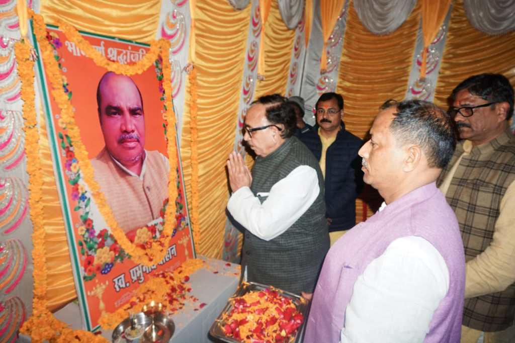 गाजीपुर।केंद्रीय मंत्री तथा चंदौली लोकसभा के सांसद महेंद्र नाथ पांडेय गुरुवार की देर रात भाजपा के दिवंगत पूर्व जिलाध्यक्ष प्रभुनाथ चौहान के घर पहुंचे, जहाँ उन्होंने उनके चित्र पर पुष्प अर्पित कर श्रद्धांजलि दी।प्रभुनाथ चौहान का 17 जनवरी की सुबह आकस्मिक निधन हो गया था।इस निधन से दुखी मंत्री महेन्द्र नाथ पांडेय ने परिजनों से मिलकर कहा कि इस दुख कि घड़ी मे हम आप सबके साथ है।प्रभुनाथ जी ने बहुत बड़ी सामाजिक कमाई की है अपना बहुत ही प्रिय साथी बताते हुए उन्होंने कहा कि हम लोग साथ-साथ भाजपा और समाज का काम करते थे।इनका निधन स्तब्ध करने वाला है, वो भाजपा और समाज के जिन्दादिल जनप्रिय नेता थे जो अनन्त संभावनाओं से भरे थे।समाज के लिए सदैव समर्पित भाजपा के कर्मठ नेता का उनका असमय जाना अत्यन्त दुखद है।