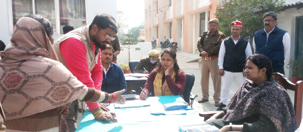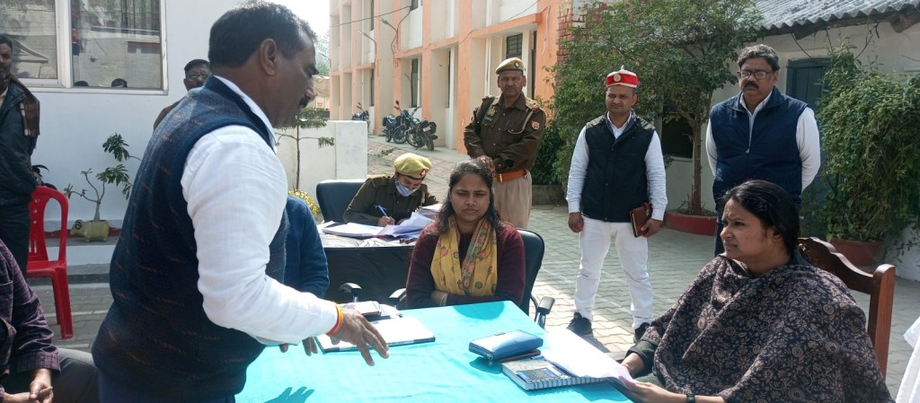गाजीपुर।शासन के निर्देश पर शनिवार को थाना दिवस के उपलक्ष्य में जिलाधिकारी आर्यका अखौरी थाना कोतवाली में उपस्थित फरियादियों की फरियाद सुनी,साथ ही शिकायतो को जल्द से जल्द निस्तारण के लिए प्रशासनिक एवं पुलिस अधिकारियों को निर्देश दिया। थाना दिवस पर शहर कोतवाली मे 21 फरियादियों ने अपनी-अपनी शिकायतो को लिखित रूप में दिया। जिसमें जिलाधिकारी द्वारा मौके पर 03 शिकायतो का निस्तारण किया गया शेष शिकायतो को जल्द से जल्द निस्तारण हेतु सम्बधित अधिकारियों को निर्देश दिया गया। जिलाधिकारी ने निर्देश दिया भूमि पर अवैध कब्जा करने वाले भू माफियाओ के विरूद्ध एन्टी भू माफिया एक्ट के अन्तर्गत मुकदमा पंजीकृत करते हुए कड़ी कार्यवाही करे और गरीबो के पट्टे आदि की भूमि पर बार-बार कब्जा करने वालो के खिलाफ केस दर्ज कर जेल भेजने की कार्यवाही की जाए। उन्होने निर्देश दिया कि लेखपाल एवं हल्का सिपाही आपसी सामन्जस्य स्थापित करते हुए एक-दूसरे का मो0नम्बर अपने पास रखे तथा टीम बनाकर प्राप्त शिकायतो का स्थलीय निरीक्षण करते हुए निस्तारण करे। उन्होने सख्त निर्देश दिया कि शिकायतो का निर्धारित समय में निस्तारण न किये जाने पर सम्बन्धित लेखपाल एंव सिपाही पर अनुशासनात्मक कार्यवाही सुनिश्चित की जायेगी। इस मौके पर उपजिलाधिकारी सदर प्रतिभा मिश्रा,अधिशासी अधिकारी नगर पालिका परिषद, थानाध्यक्ष कोतवाली,लेखपाल, तहसीलदार, एंव अन्य अधिकारीगण उपस्थित थे।