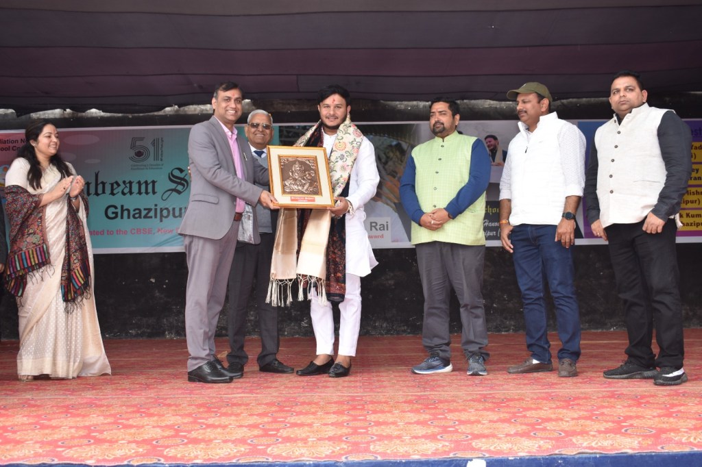 गाजीपुर। सनबीम स्कूल महराजगंज में सोमवार को राष्ट्रीय युवा पुरस्कार विजेता सिद्धार्थ राय को सम्मानित किया गया। यह कार्यक्रम कर्नाटक के हुबली में राष्ट्रीय युवा महोत्सव में कर्नाटक के राज्यपाल थावरचंद गहलोत, मुख्यमंत्री बसवराज बोम्मई, केन्द्रीय खेल और युवा कल्याण मंत्री अनुराग ठाकुर और केन्द्रीय खेल मंत्री प्रहलाद जोशी के द्वारा संयुक्त रूप से सिद्धार्थ राय को दिया गया। सनबीम स्कूल में सिद्वार्थ राय को स्मृति चिन्ह व अंगवस्त्रम से सम्मानित किया गया। सिद्धार्थ राय उम्मीद फाउंडेशन के संस्थापक हैं। शिक्षा के क्षेत्र में भी उन्हें गोल्ड मेडल मिल चुका है। एक बड़ी मल्टीनेशनल कंपनी में कैंपस प्लेसमेंट भी मिलने के बाद भी उन्होने नौकरी छोड़ दी। इसके बाद उन्होने अपने गांव में कुछ करने की सोची। इसके बाद हरिहरपुर हाला गांव में उन्होंने अपनी बंजर जमीन पर तालाब खुदवाया और दो गाय भी पाल लीं ।आज वो स्थल खुर्पी के नाम से एक लोकप्रिय पर्यटक स्थल बन चुका है । सनबीम स्कूल द्वारा आयोजित सम्मान समारोह में सदर तहसीलदार अभिषेक कुमार ,वाराणसी के एसडीएम ज्ञानप्रकाश एवं समाजसेविका अलका पाण्डेय और जिले के सम्मानित लोग उपस्थित रहे। इस मौके पर विद्यालय के चेयरमैन केपी सिंह, डिप्टी डायरेक्टर शोभा सिंह , डायरेक्टर नवीन सिंह , असिस्टेन्ट डायरेक्टर प्रवीण सिंह , स्मिता सिंह एवं विद्यालय की प्रधानाचार्य के साथ विद्यालय के समस्त कर्मचारीगण और छात्र-छात्राएं मौजूद रहे।